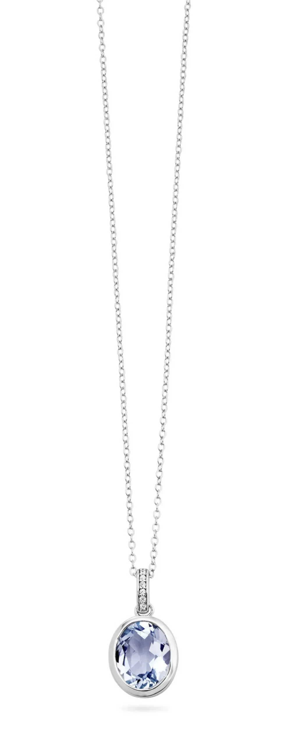 Schicker Anhänger mit beh. Blautopas und synth. Zirkonia in der Legierung Silber 925/- fein.