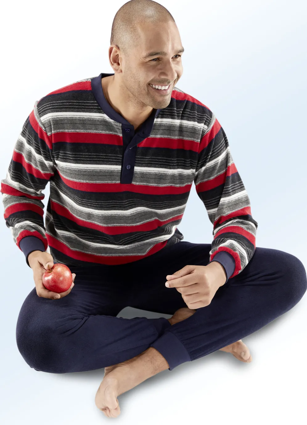 Mollig warmer Schlafanzug in Marine-Rot-Anthrazit mit Bündchenabschlüssen: Das Oberteil