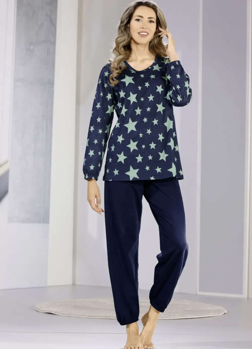 Oberteil mit langen Ärmeln. Lange Hose mit Dehnbund.