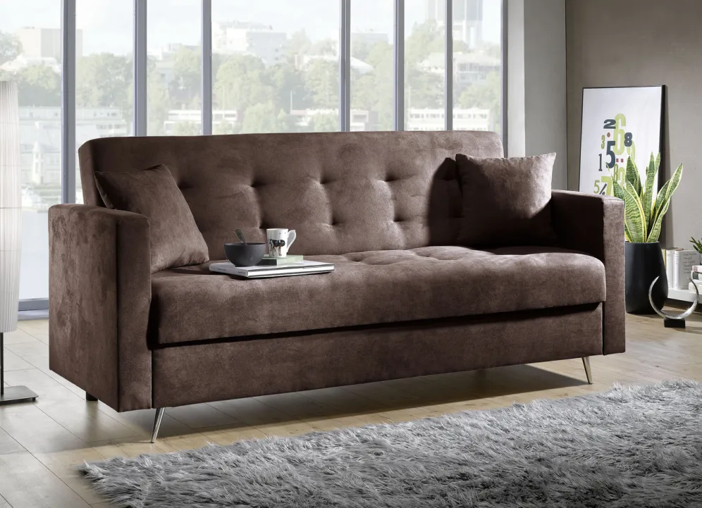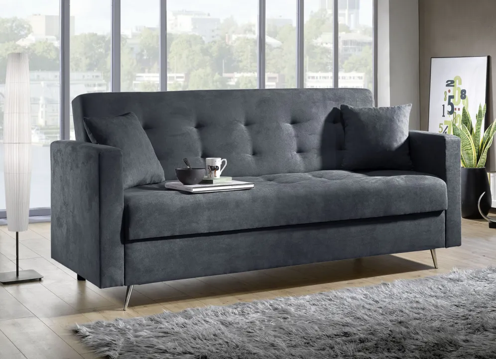 Schlafsofa auf Chromfüßen mit Bettkasten
