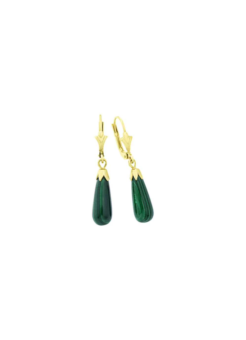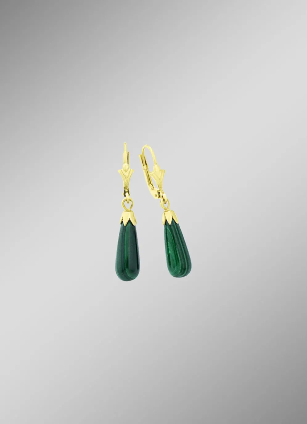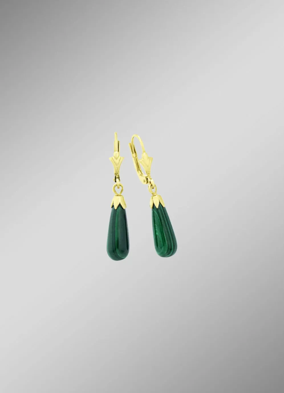 Schlichte Ohrhänger mit echt Malachit in der Legierung Gold 375/- fein.