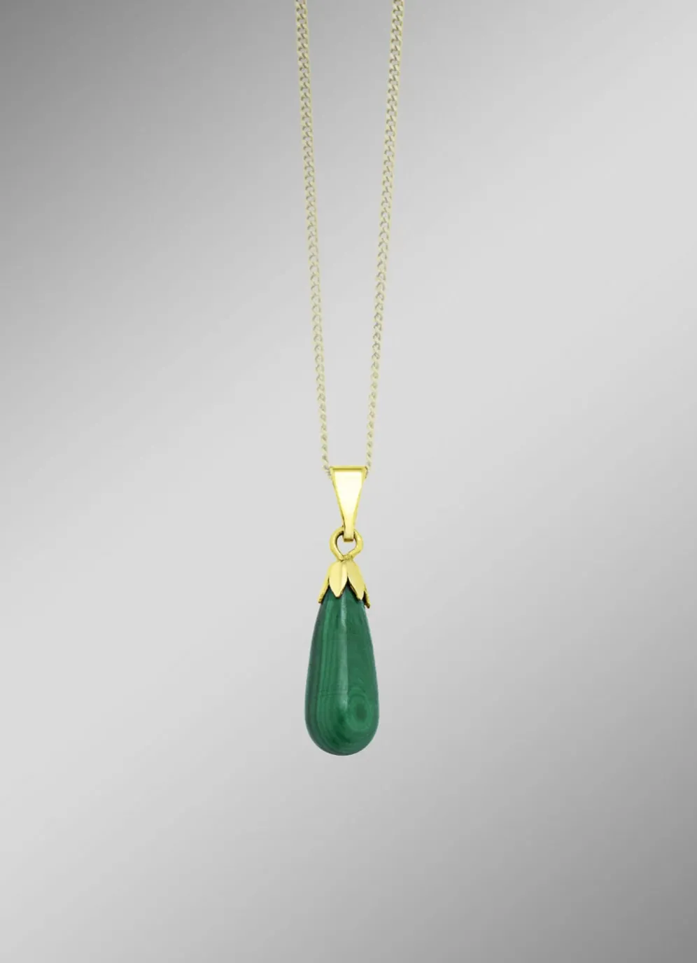 Dieser schlichte und stilvolle Anhänger ist aus feinem Gold 375/- gefertigt und trägt einen echten Malachit in Tropfenform. Der grüne Edelstein hat eine beruhigende Wirkung und symbolisiert Harmonie, Schutz und Heilung. Das 19×16 mm Schmuckstück passt perfekt zu jeder Garderobe und verleiht Ihnen einen Hauch von Natur und Eleganz.