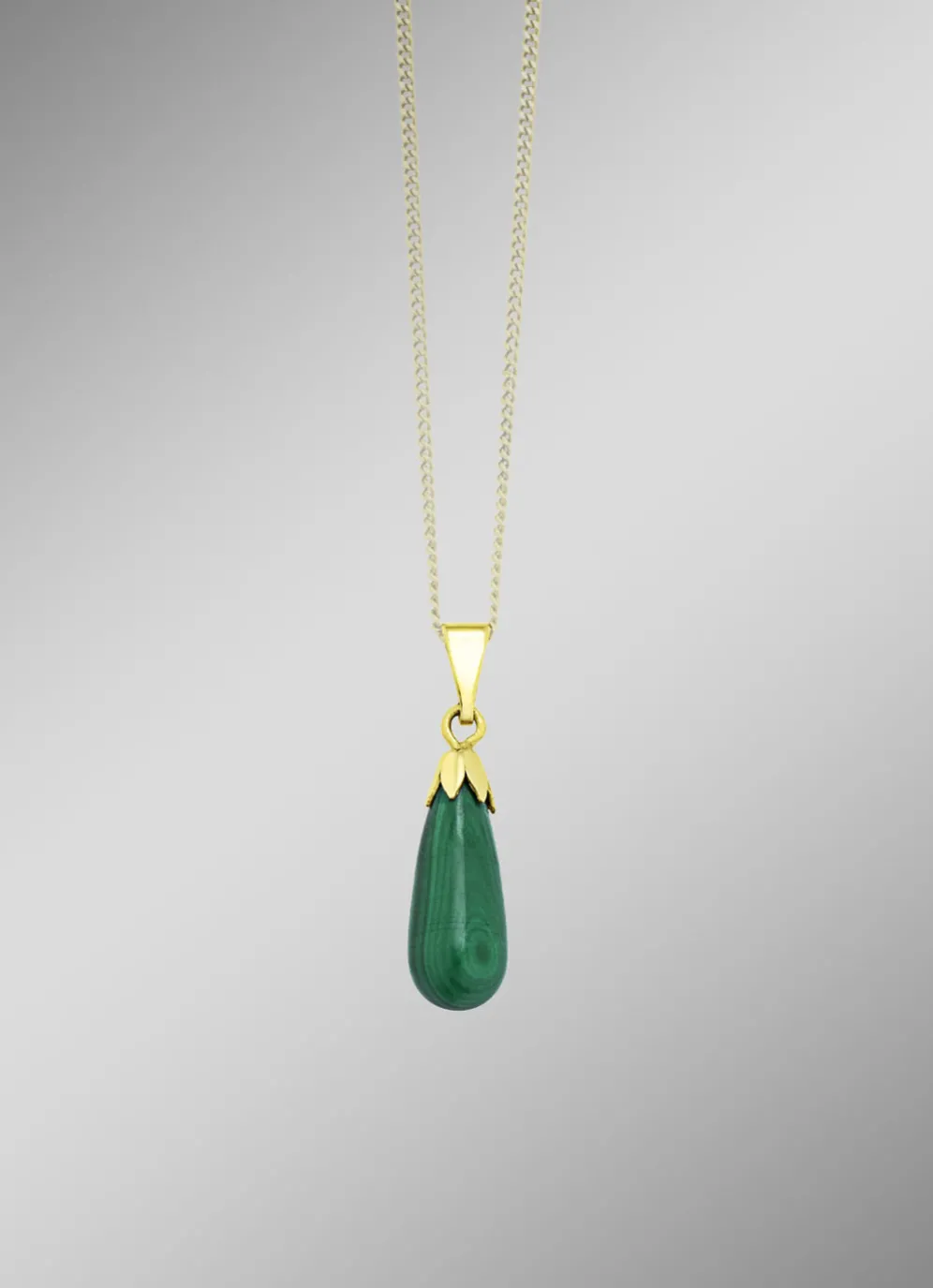 Schlichter Anhänger mit echt Malachit in der Legierung Gold 375/- fein.