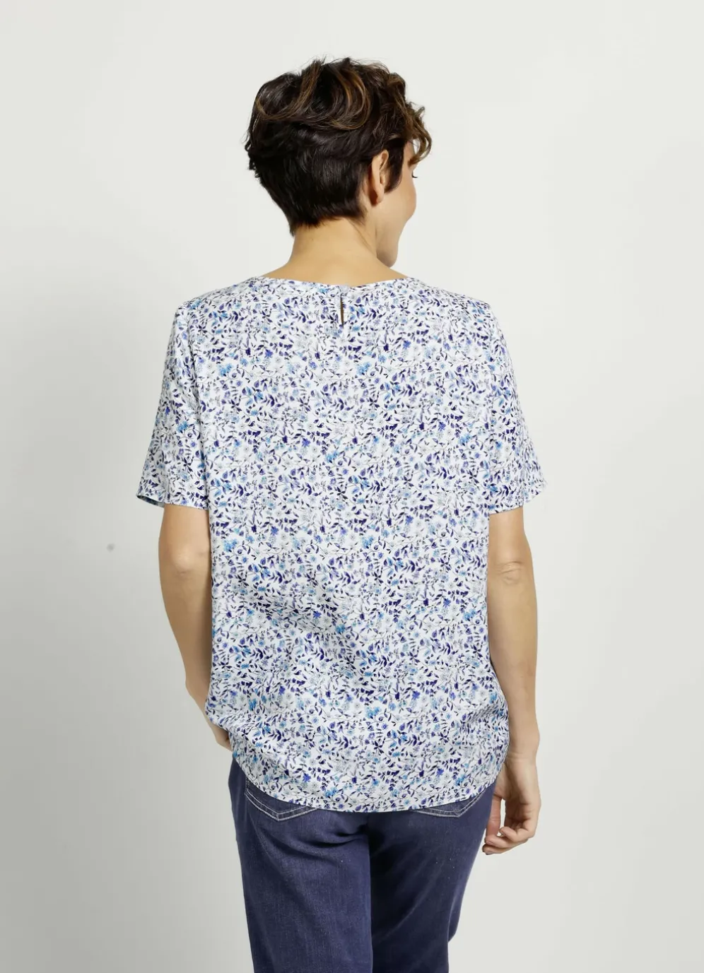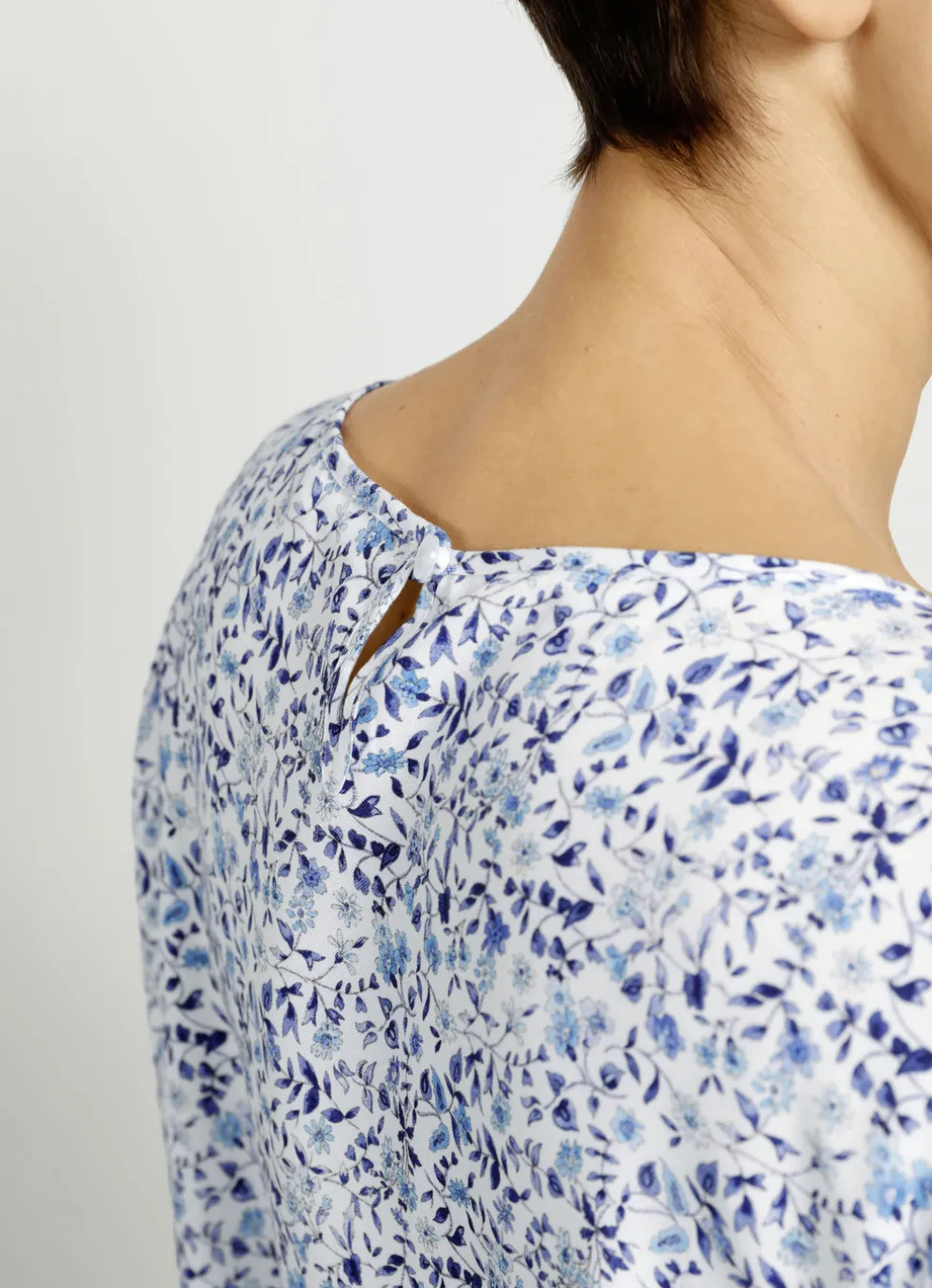 Schlupfbluse mit wunderschönem Floralprint. Die Bluse hat einen Rundhalsausschnitt und ist gerade geschnitten. Die Ärmel sind halblang mit geradem Abschluss.
