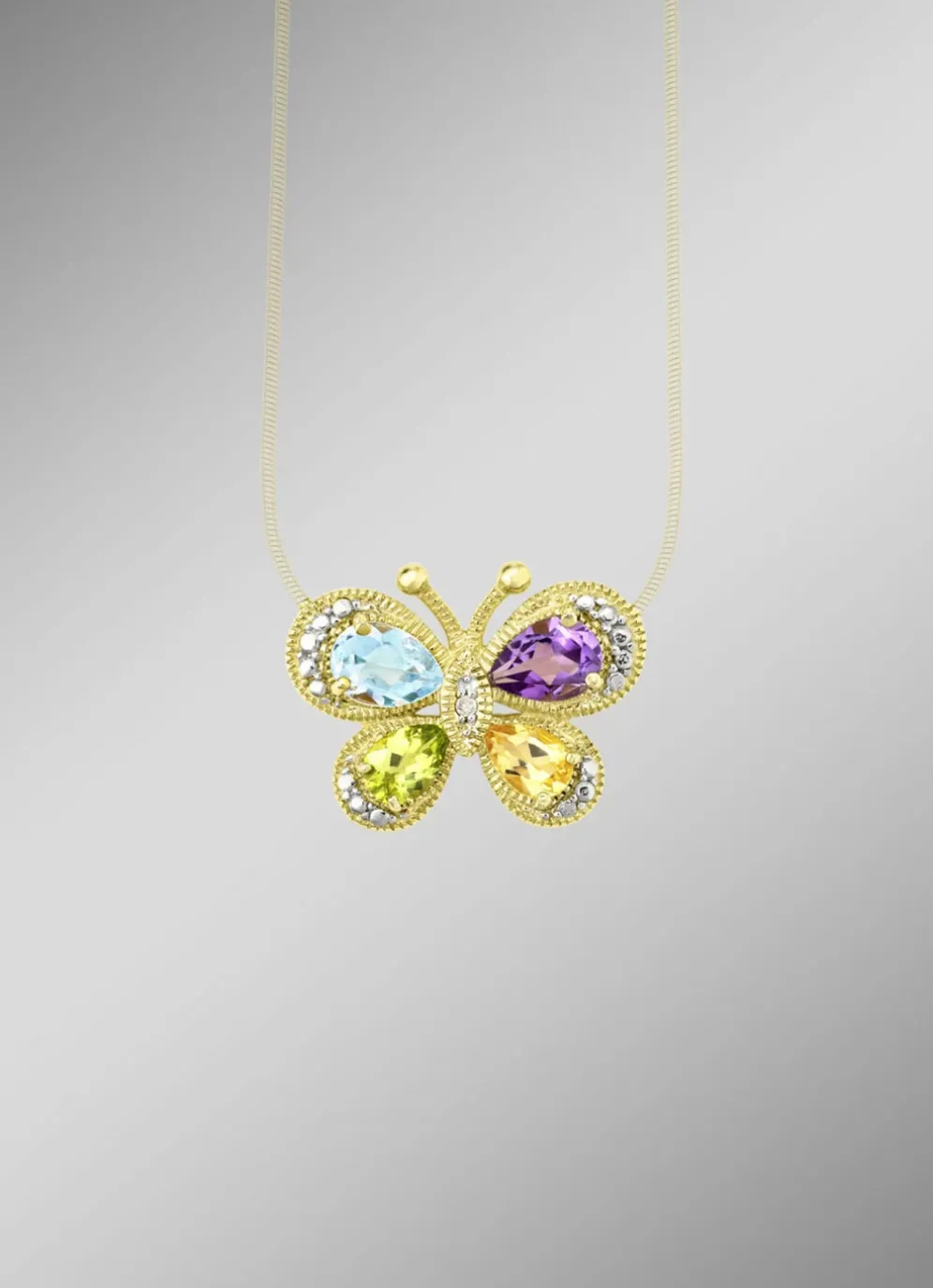 aus 925er Silber. Dieser exquisite Anhänger ist mit einem getönten weißen Diamanten, Piqué2 sowie echten Citrin-, Peridot-, Amethyst- und behandelten Blautopas-Steinen verziert. Mit einer Größe von 16×22 mm ist dieser Anhänger das perfekte Accessoire, um jedem Outfit einen funkelnden Akzent zu verleihen. Lassen Sie sich von der Schönheit und Anmut dieses einzigartigen Schmuckstücks verzaubern und genießen Sie die bewundernden Blicke.