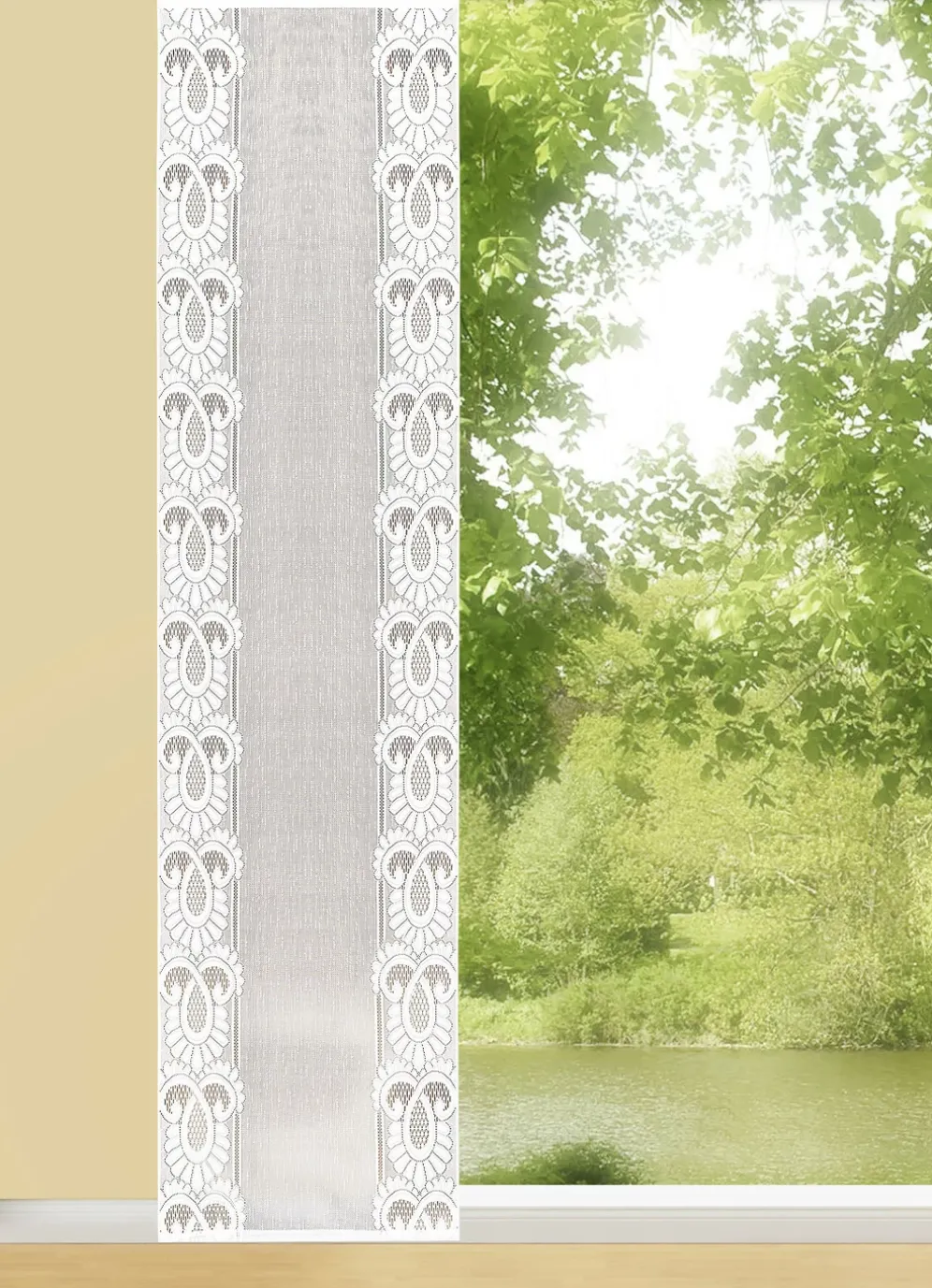 Schöne Schiebegardine mit geradem Abschluss in Größe 458 (H225xB57 cm) und in Weiss.