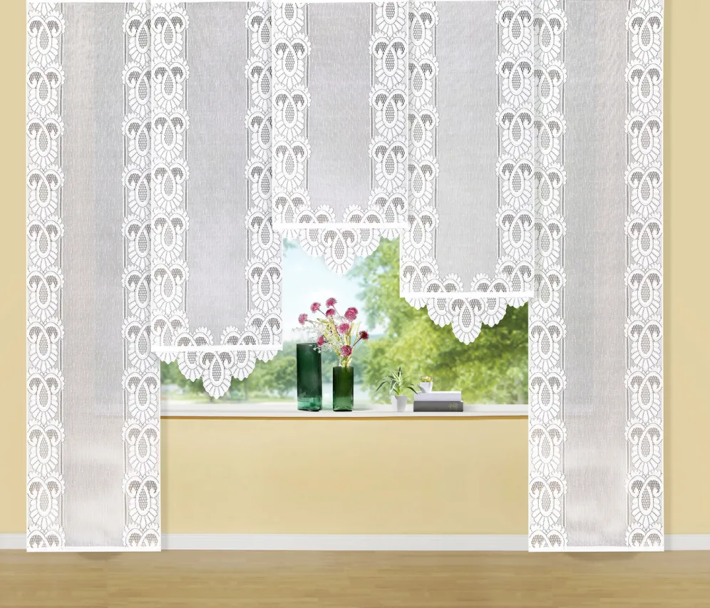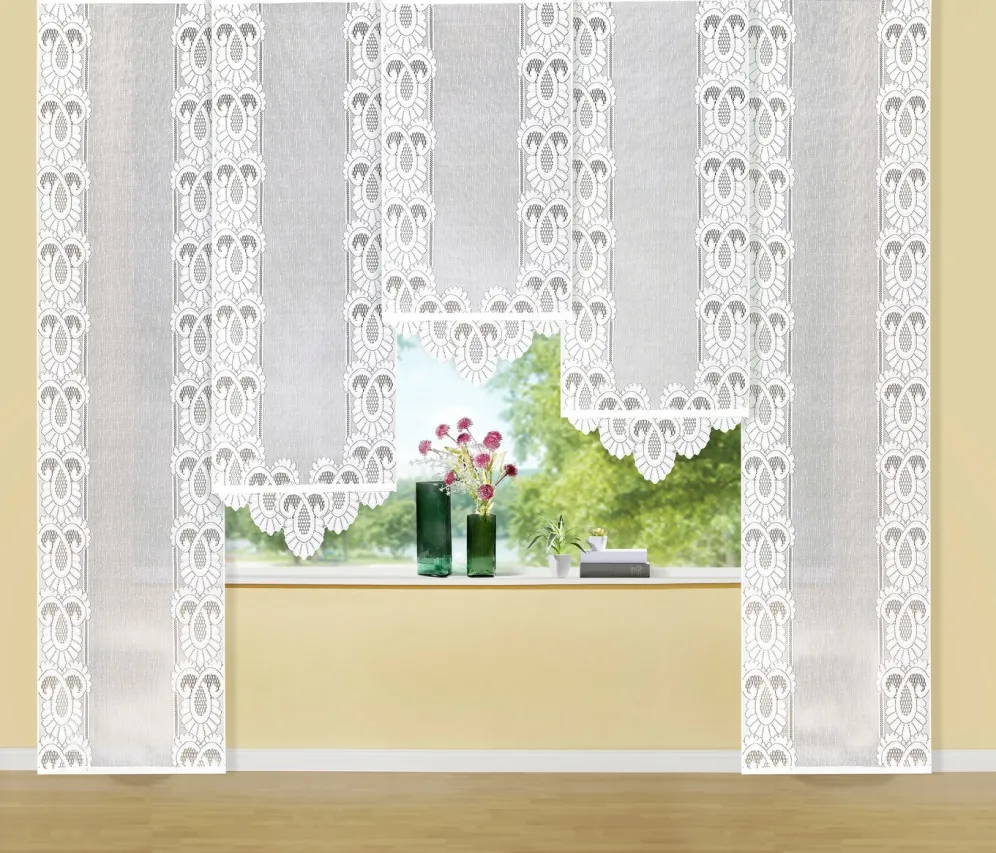 Hervorragende, filigran und edel anmutende Schiebegardine. Durch die Klettschiene am Flauschband und die Stange, die am unteren Teil durch einen Tunnel eingeschoben wird, haben Sie gerade fallende Schiebegardinen ganz ohne Faltenbildung.