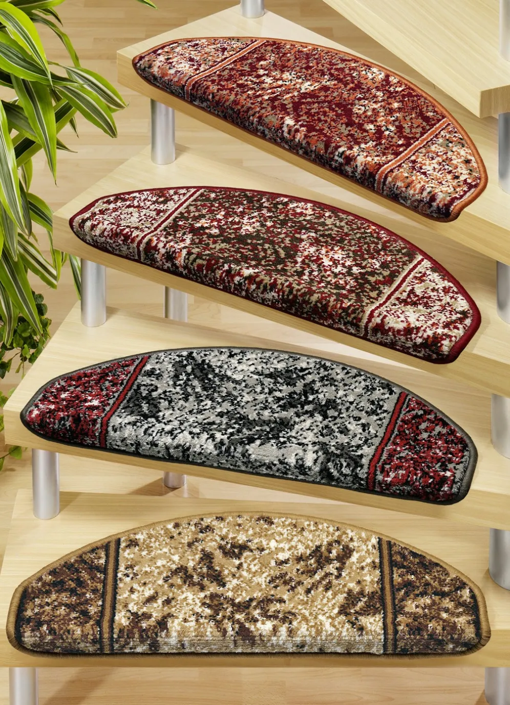 Stufenmatten mit ansprechendem Muster. Florhöhe 7 mm. Trittmaß 22×65 cm. Die gewebte Qualität: