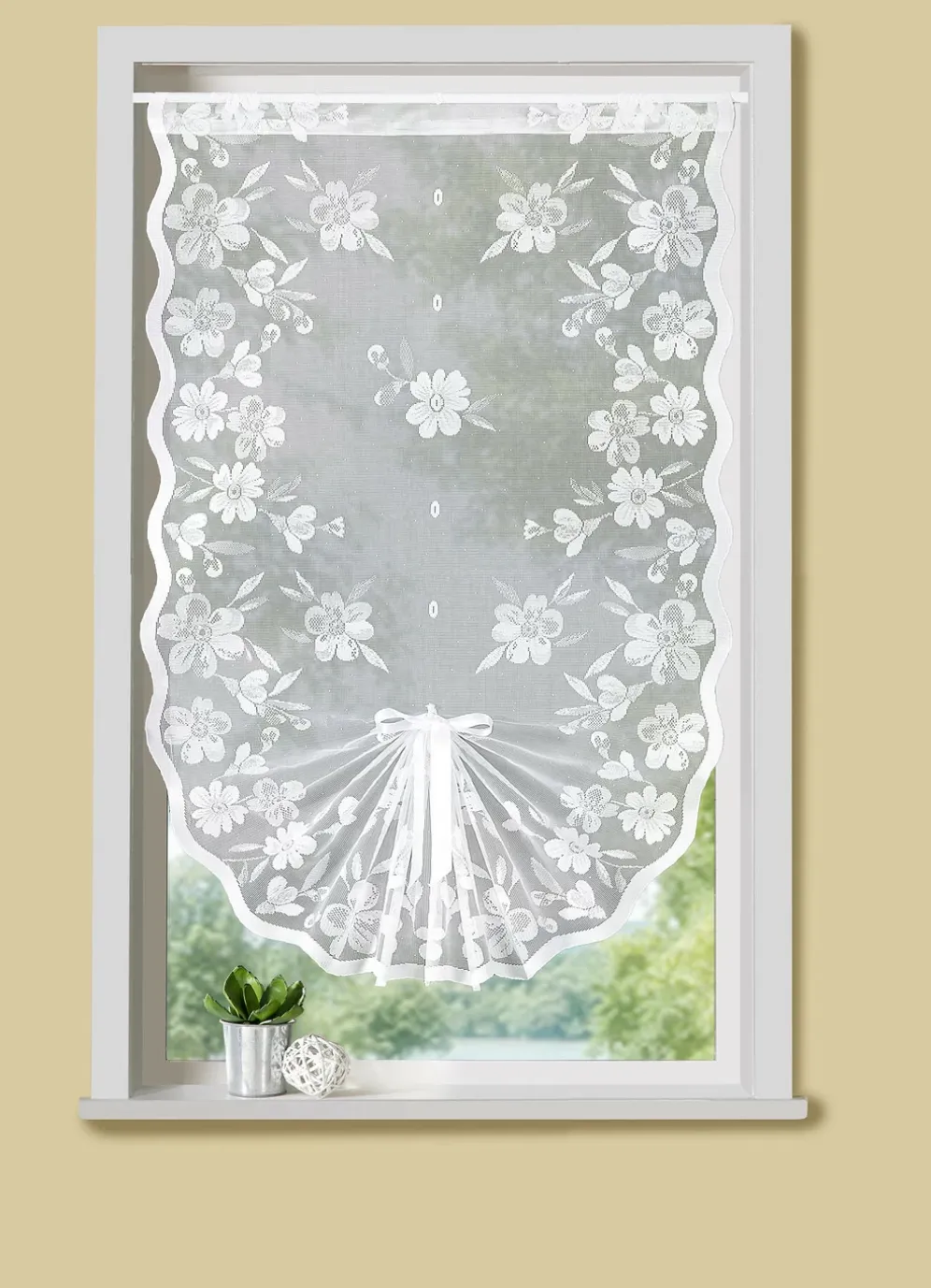 Einen wunderbar blumigen Ausblick beschert Ihnen dieser floral dessinierte Schwalbenschwanz mit Stangendurchzug! Unten ausgebogt und seitlich gesäumt. Die Qualität: Jacquard aus 100% Polyester.