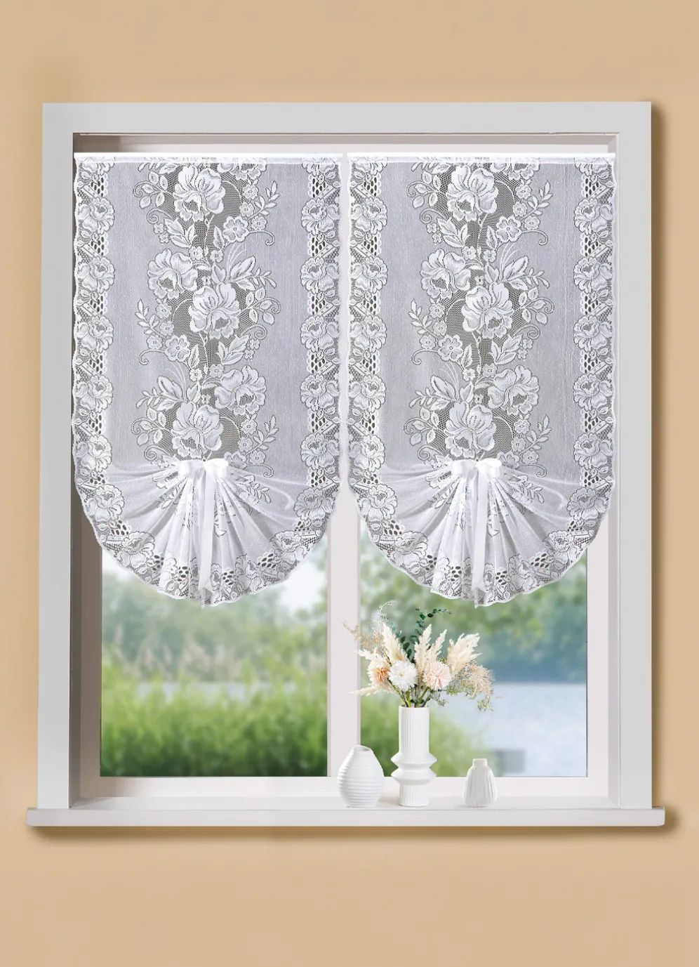 Schwalbenschwanz mit ausdrucksstarker Dessinierung und Stangendurchzug. Mit ausgebogten Abschlüssen. Auf fertige Höhe gerafft mit Satin-Schleife. Die Qualität: Jacquard aus 100% Polyester.