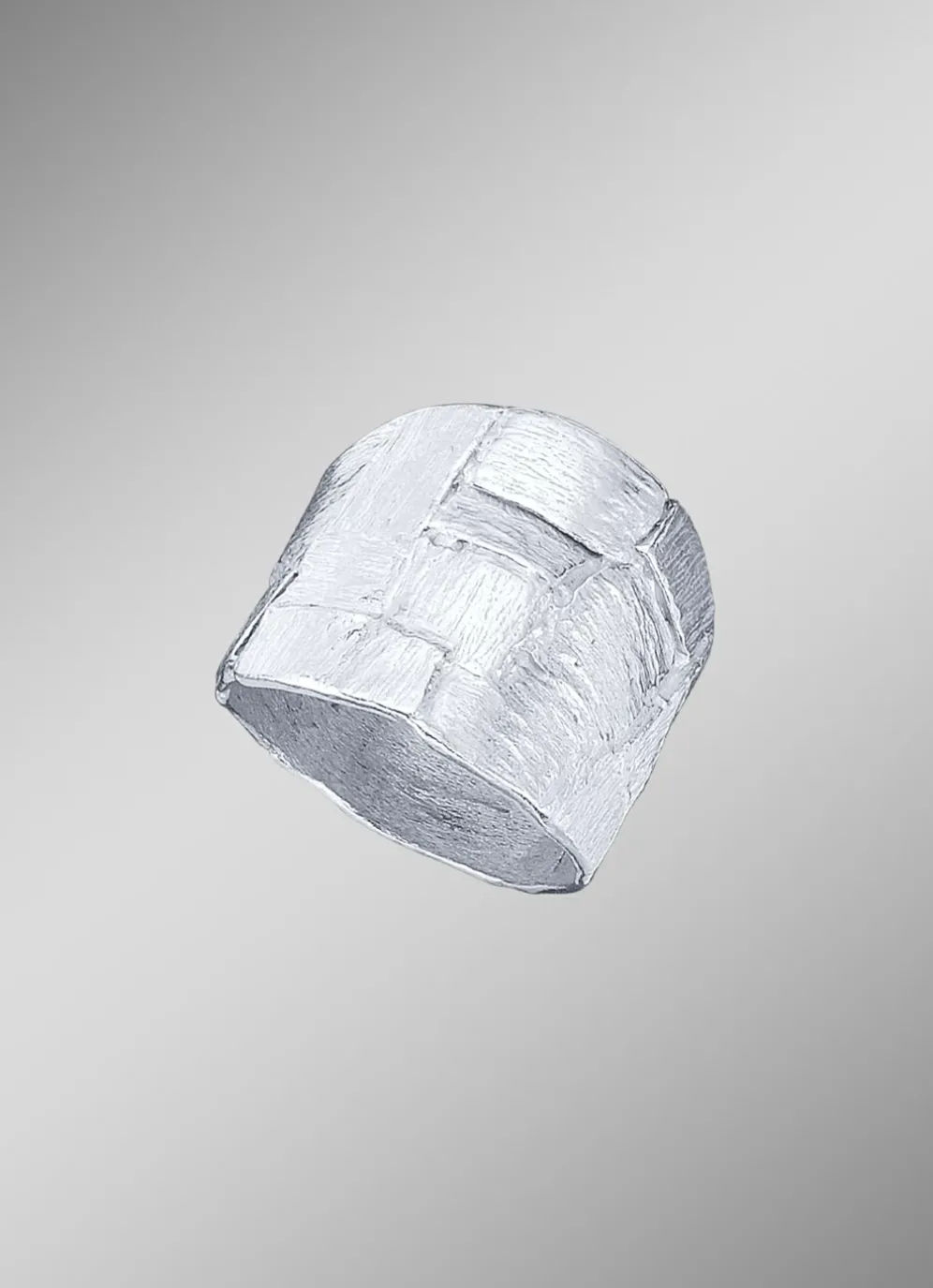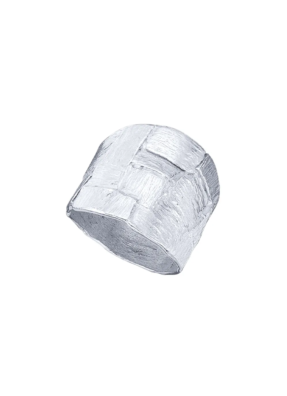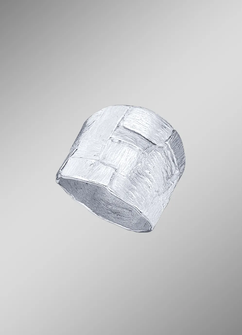 Schwerer Damenring mit gehämmerter Struktur in der Legierung Silber 925/- fein und in Größe 160.