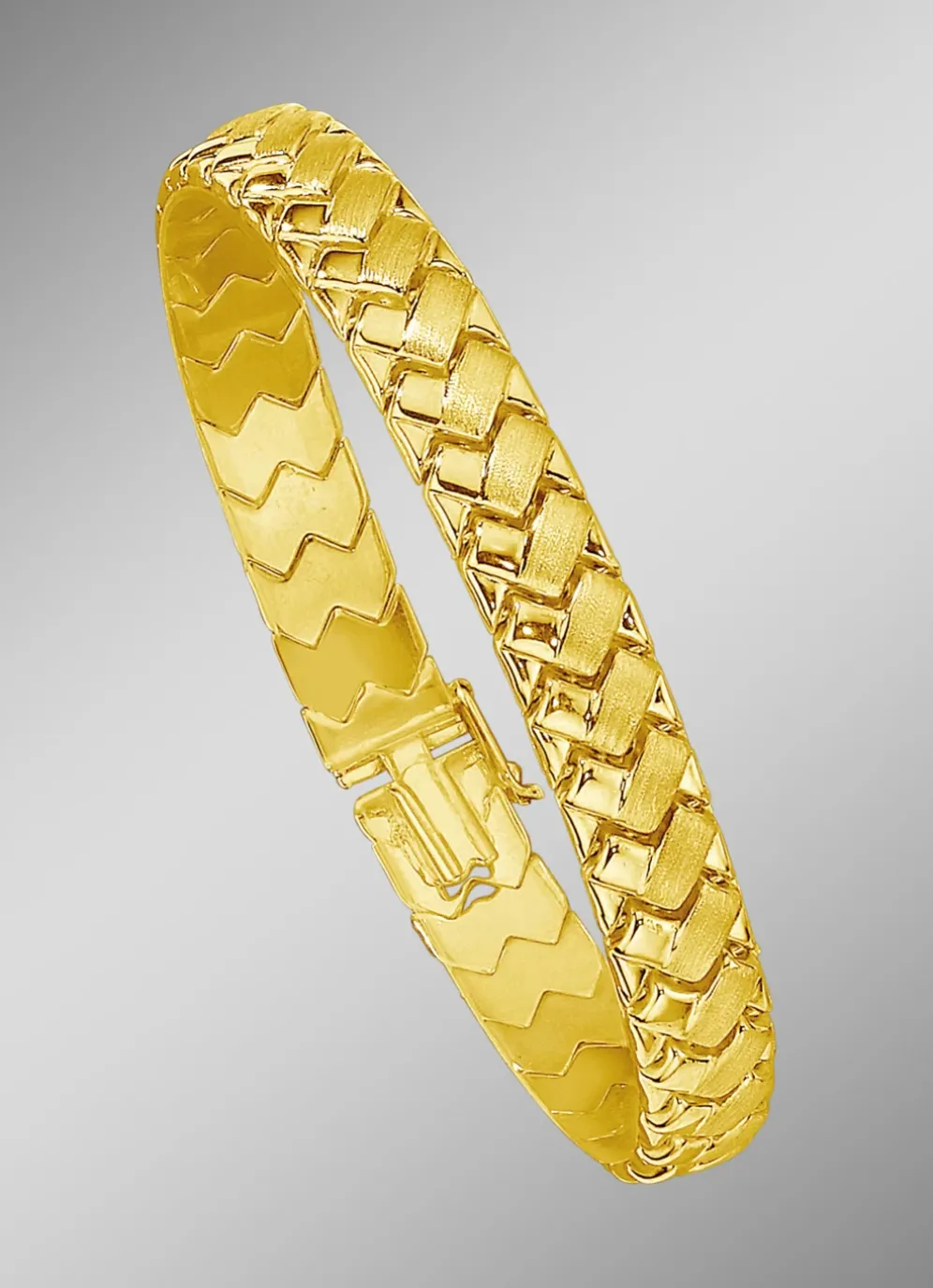 Schweres Armband in Geflecht-Optik mit Kastenschloss in der Länge von 19 cm und in der Legierung Gold 333/- fein.