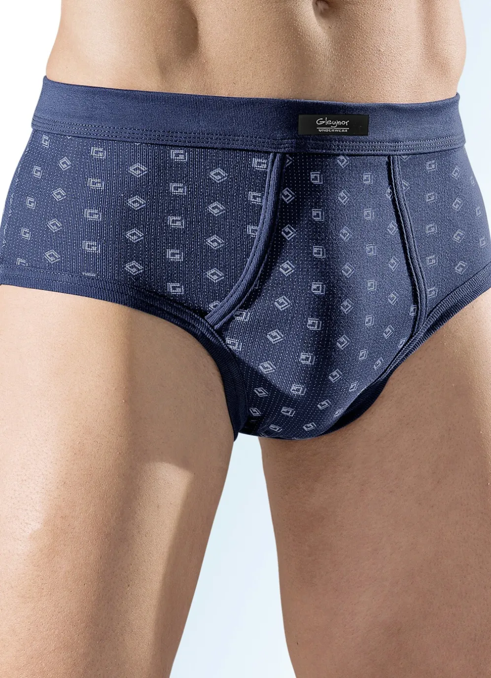 Allover dessinierter Slip mit Softbund sowie paspeliertem Eingriff.