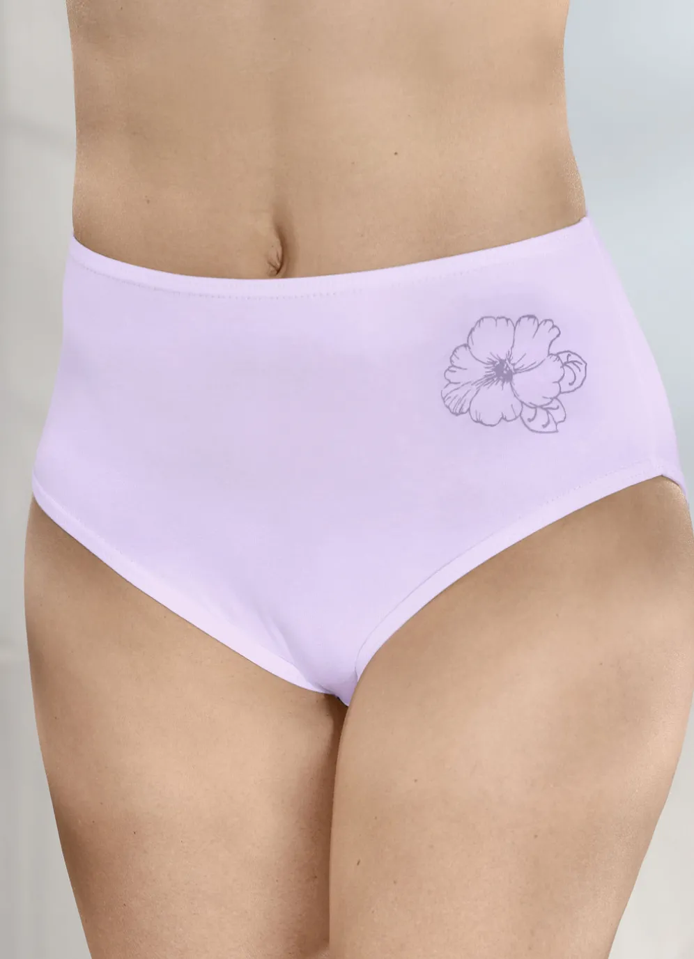 Sechserpack Slips mit Gummizug im Bund in 2X Weiss-Flieder-Lila Bedruckt, 2X Weiss, 2X Flied und in Größe 42.