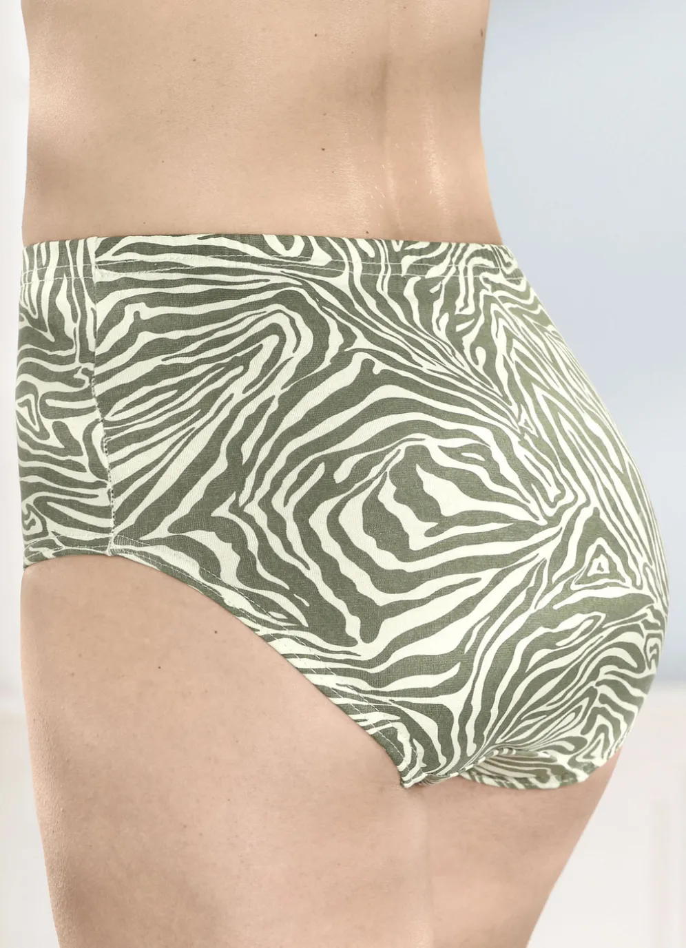 Sechserpack Slips mit Gummizug im Bund in 2X Lindgrün-Khaki Bedruckt, 2X Lindgrün, 2X Khaki und in Größe 40.