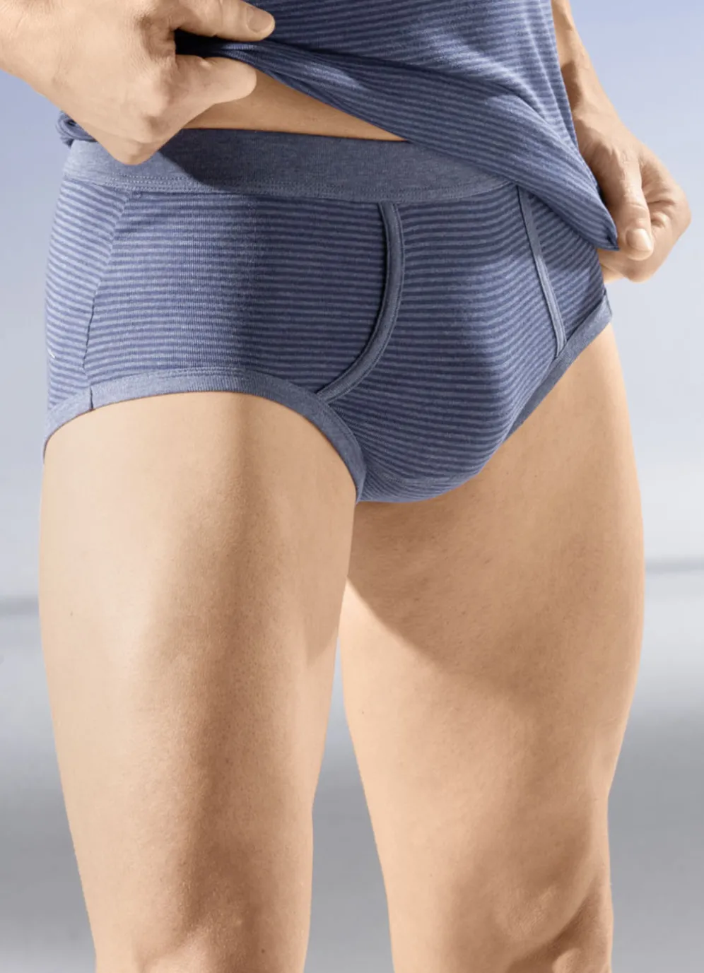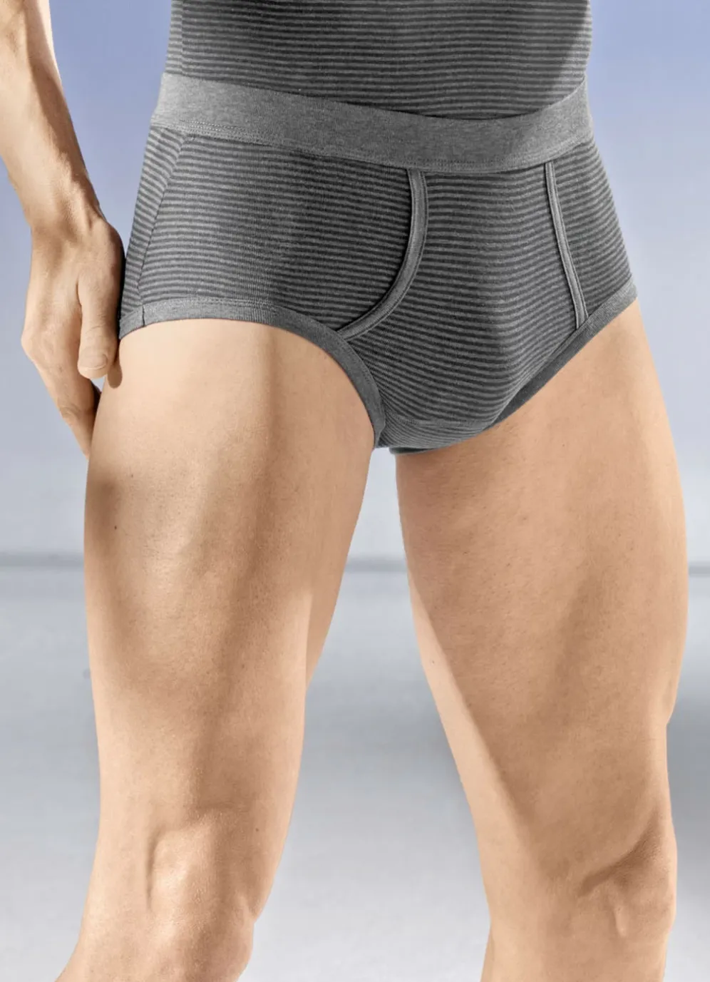 Sechserpack Slips mit Softbund in 3X Blau Meliert-Marine, 3X Anthrazit Meliert-Schwarz und in Größe 6.