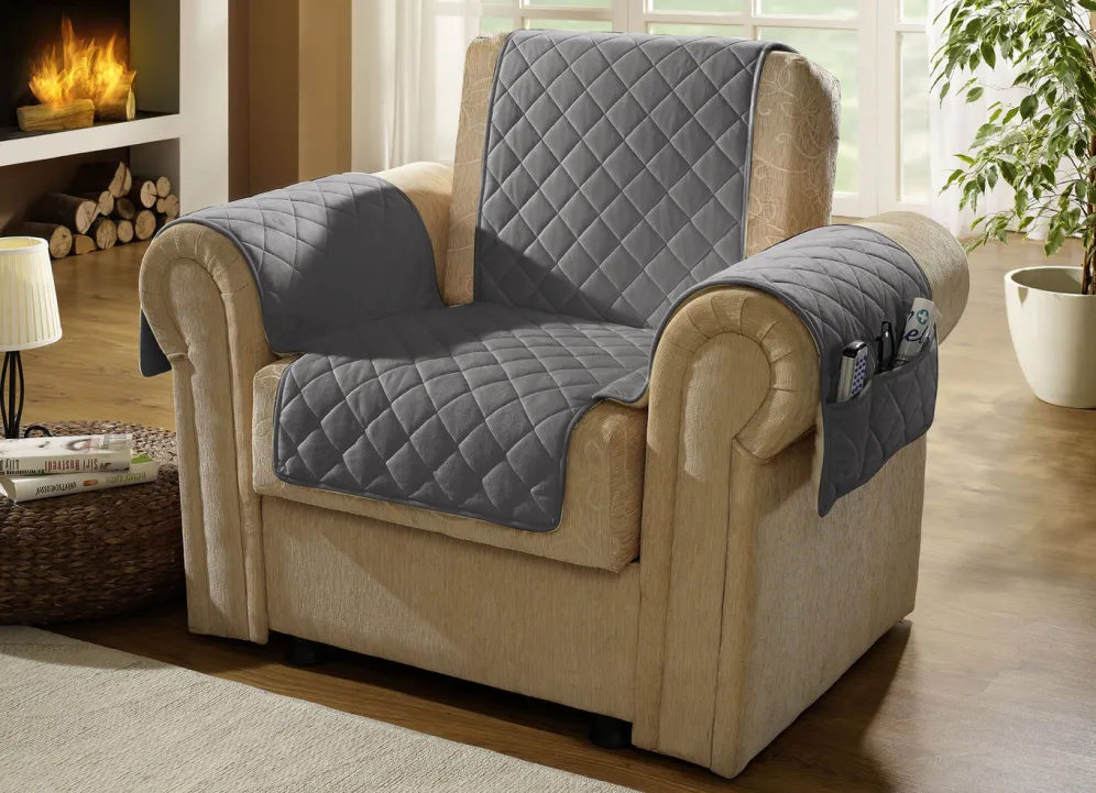 Die aufwendige, rautenförmige Steppung sorgt für ein besonders klassisches Ambiente. Armlehnenschoner jeweils mit praktischen Taschen. Handwäsche bis 30 °C