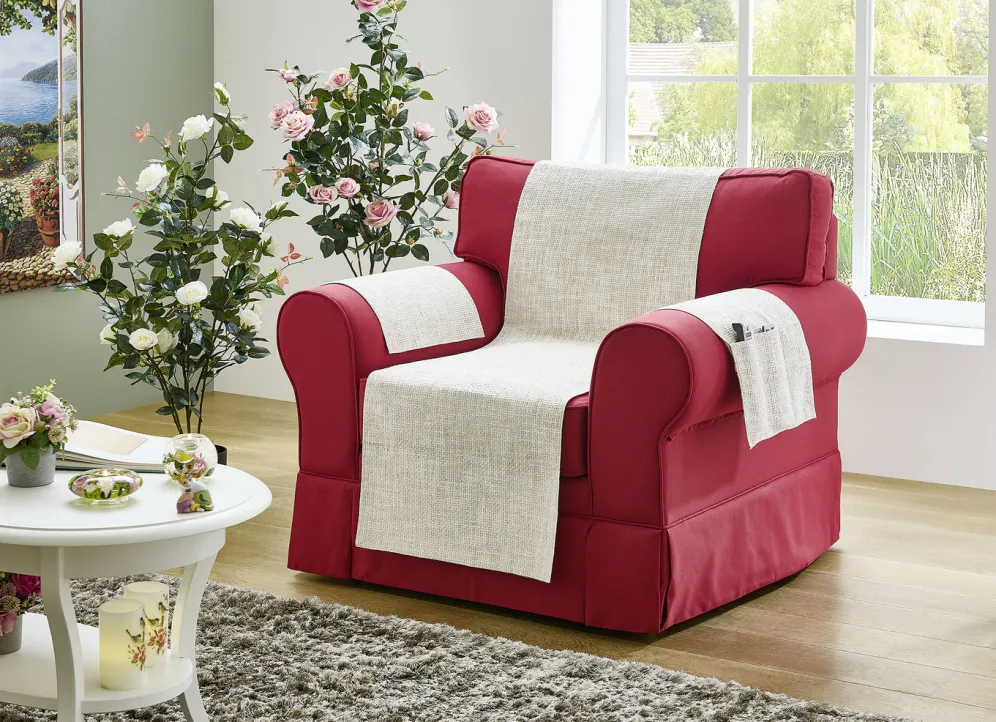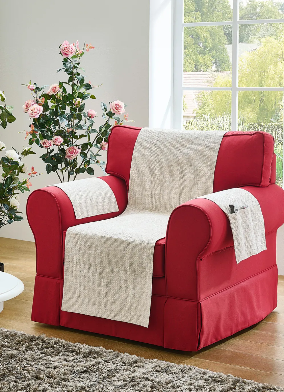 Sessel,- Couch,- und Armlehnschoner in Größe 865 (Armlehnenschoner, 2er-Set, 38×55 cm) und in Silber.