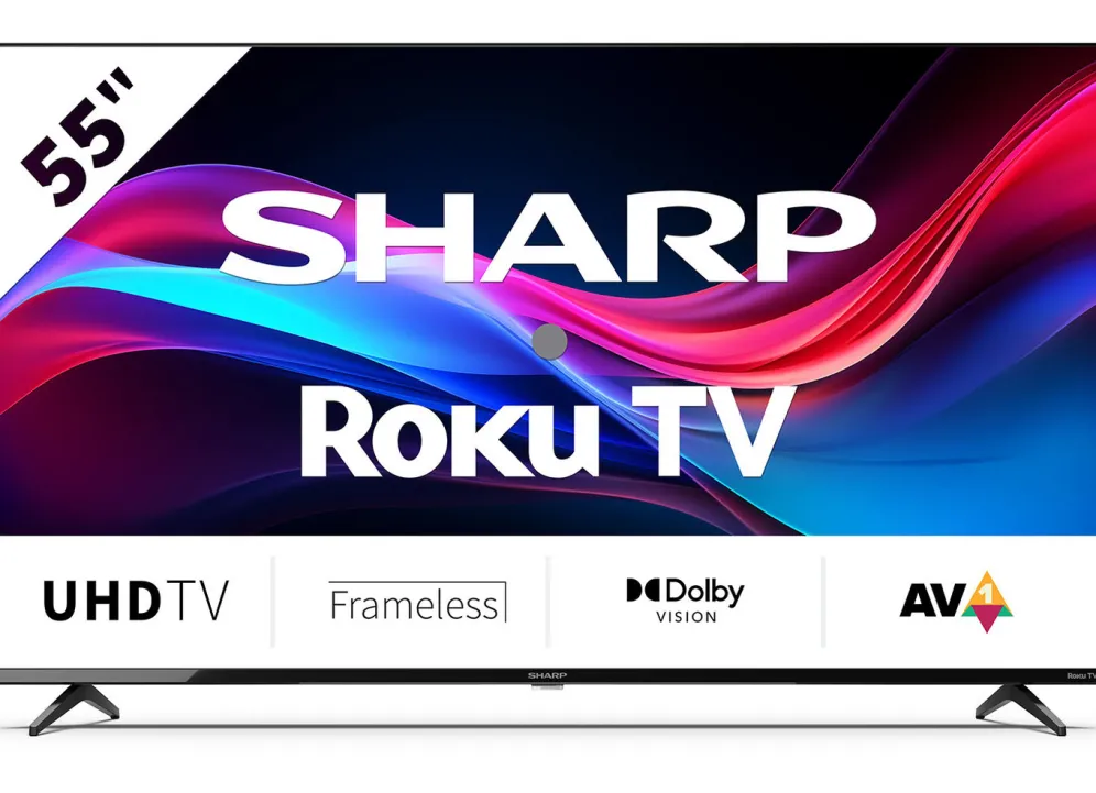 Sharp 50GJ4225E. Rahmenloser 4K-Ultra-HD-LED-Roku-TV mit einer herausragenden Bildqualität. Kompatibel mit Google-Assistant, Alexa und Siri, WLAN, Bluetooth und Dolby Vision. Integrierter 3-fach-HD-Receiver. Dolby Digital, Sound Equalizer.