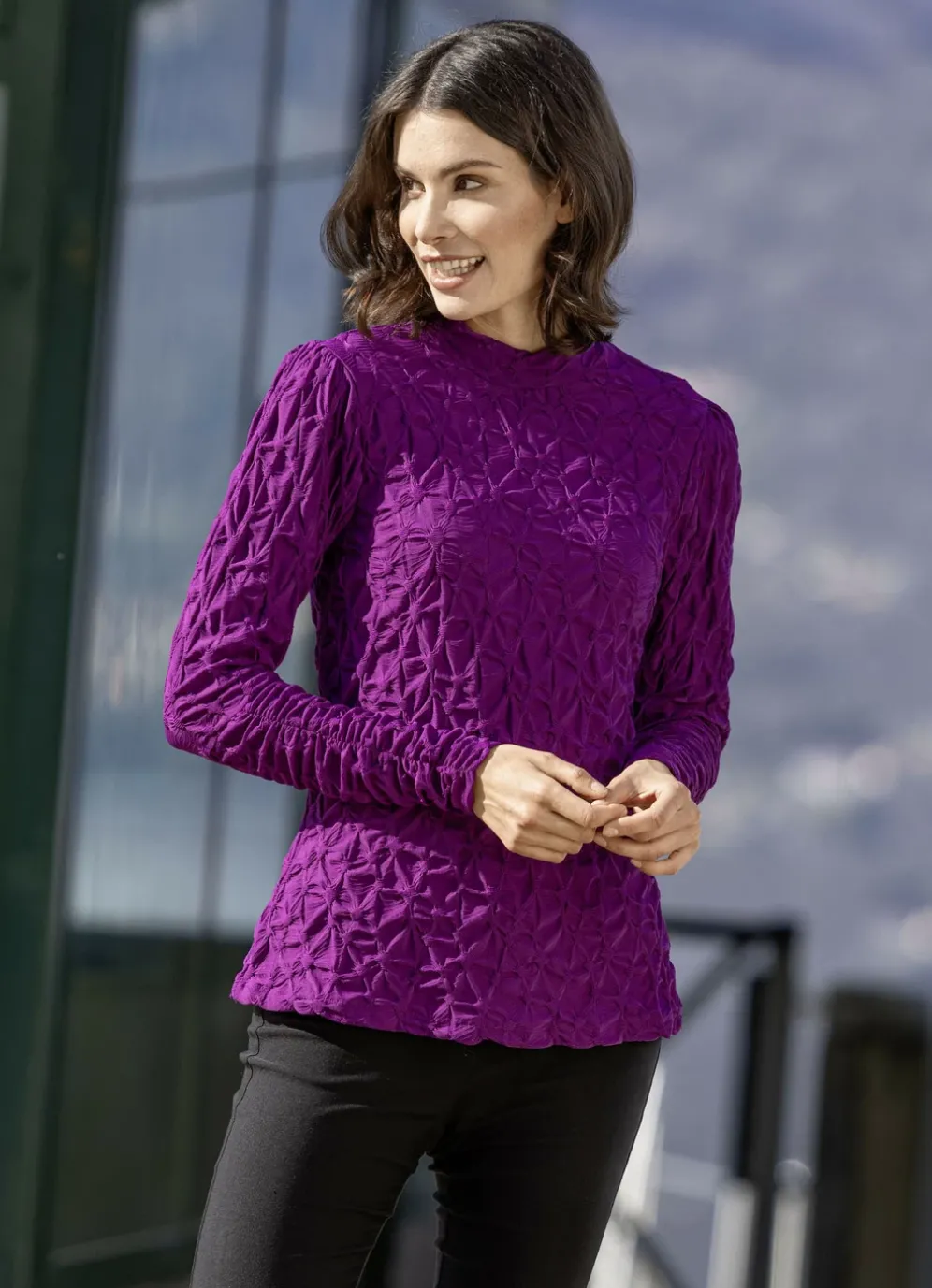 Shirt mit Stehkragen in 2 Farben in Beere und in Größe 38.