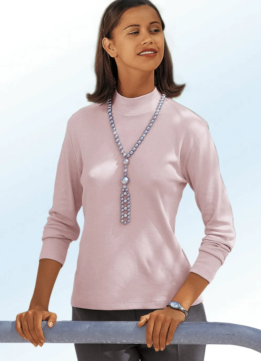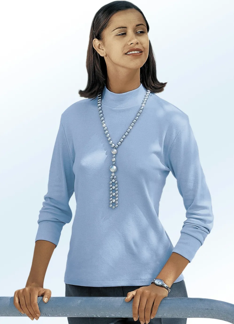 Shirt mit Stehkragen in Hellblau und in Größe 38.