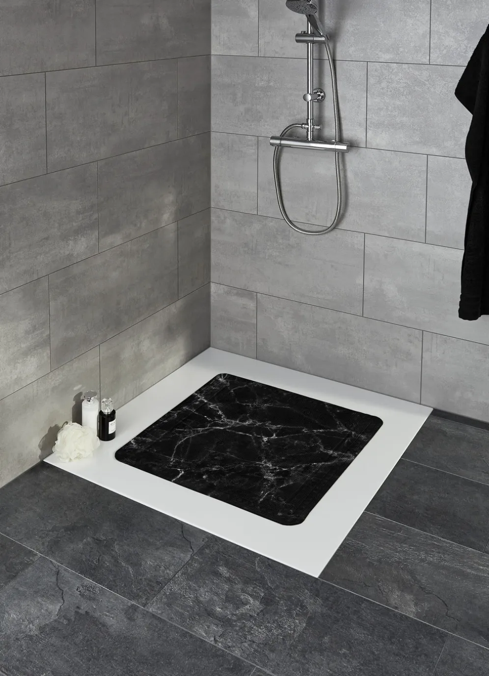 Mit einem Marmor-Dessin sind diese Sicherheits-Einlagen von „Kleine Wolke“ gestaltet, welche für höhere Sicherheit beim Duschen und Baden sorgen sollen. Die Qualität: 100% Polyvinylchlorid. Waschbar bis 40 °C