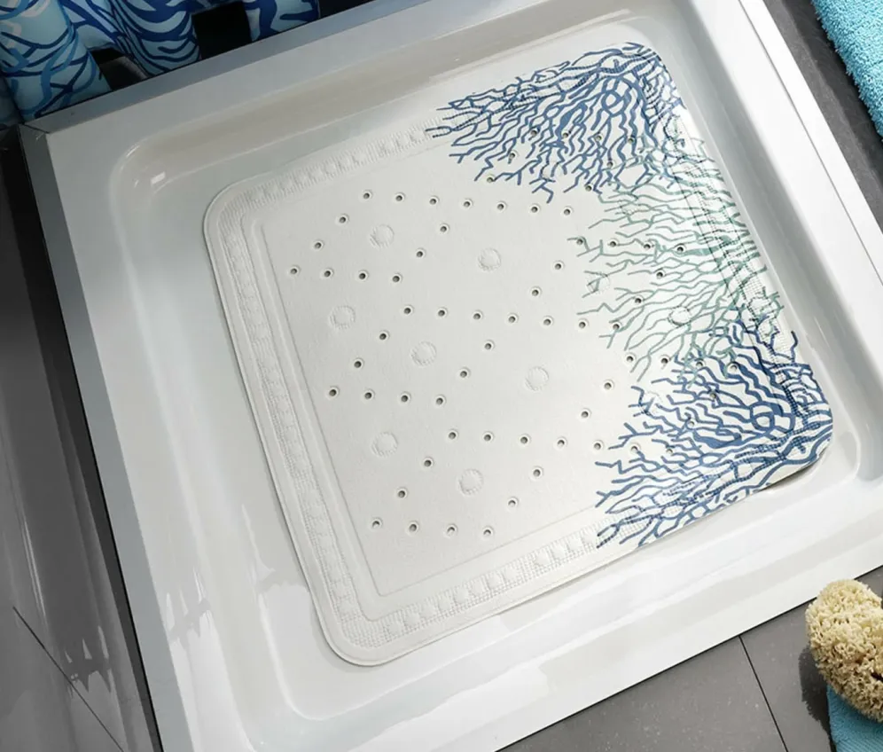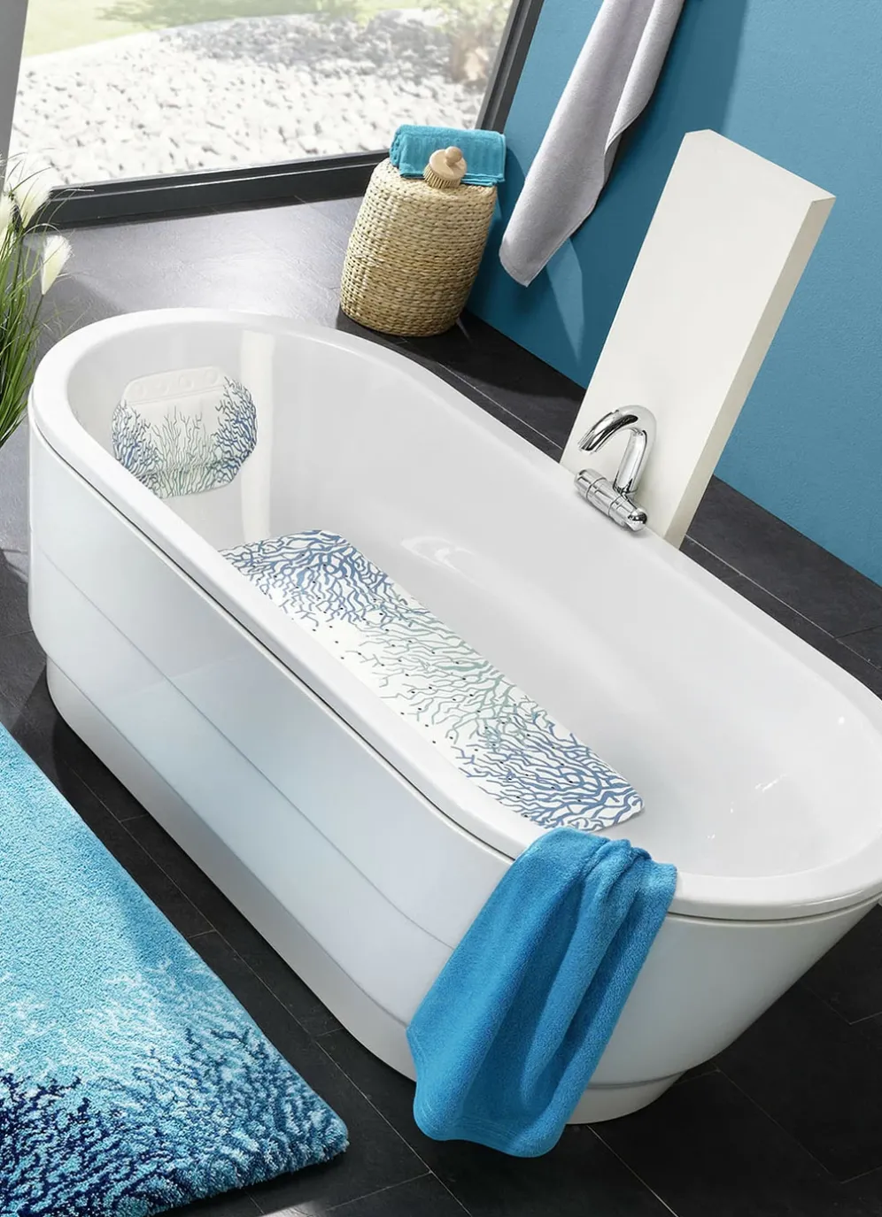 Mit einem Korallen-Dessin sind diese Sicherheits-Einlagen von „Grund“ gestaltet, welche für höhere Sicherheit beim Duschen und Baden sorgen sollen. Die Qualität: 100% Polyvinylchlorid.