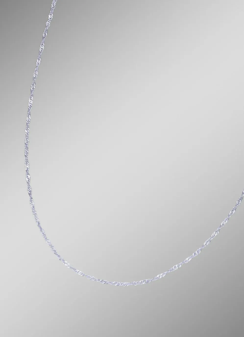 Die pure Ästhetik der Singapurkette reicht aus um jedes Outfit schmuckvoll zu inszenieren. Aus Weißgold 585/- fein oder aus Weißgold 333/- fein gefertigt, unterstreicht sie mit einer Länge von: