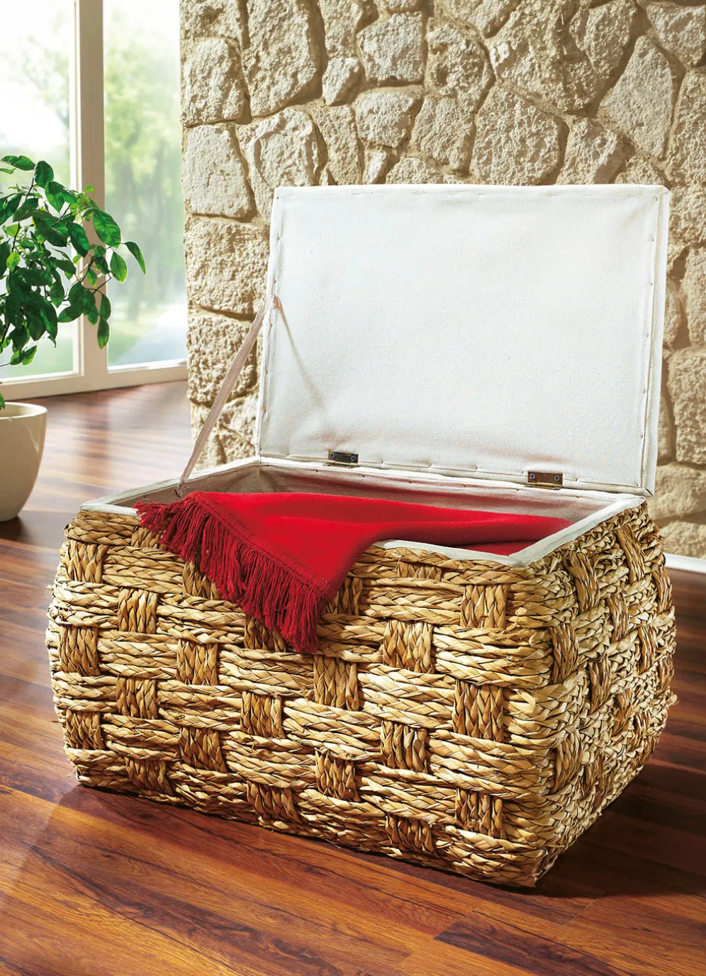 Sitztruhe aus Naturfaser in raffinierter Flechtart