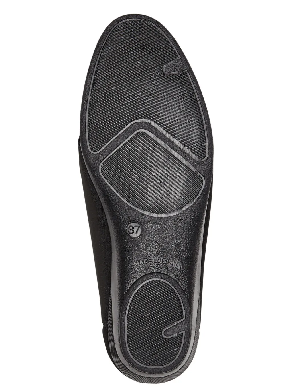 Slipper aus elastischem Textilmaterial in Schwarz-Grau und in Größe 40.