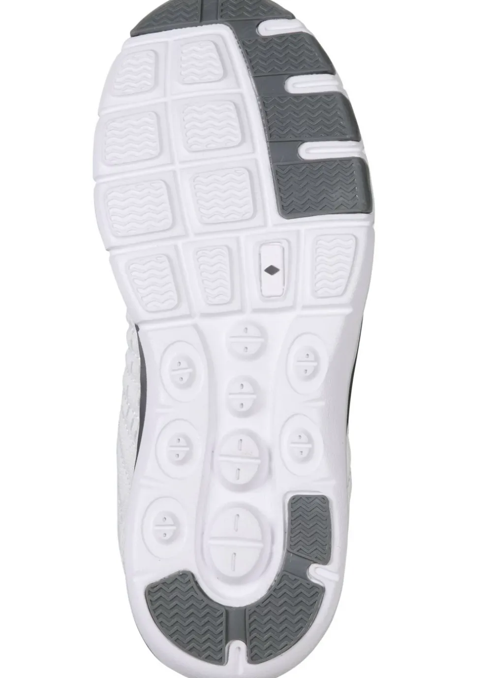 Sneaker aus effektvoll dessiniertem Textilmaterial in Eisgrau-Weiss und in Größe 36.