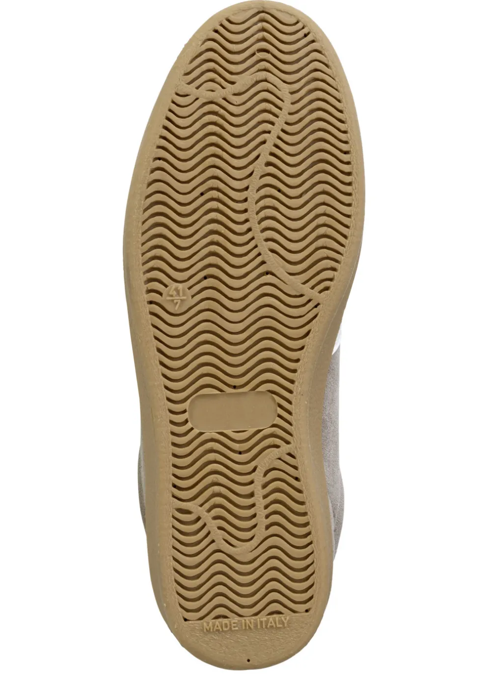 Sneaker aus Veloursleder mit Nappa-Besätzen und gepolstertem Schaftrand in Taupe und in Größe 46.