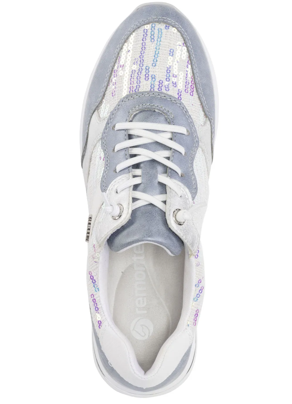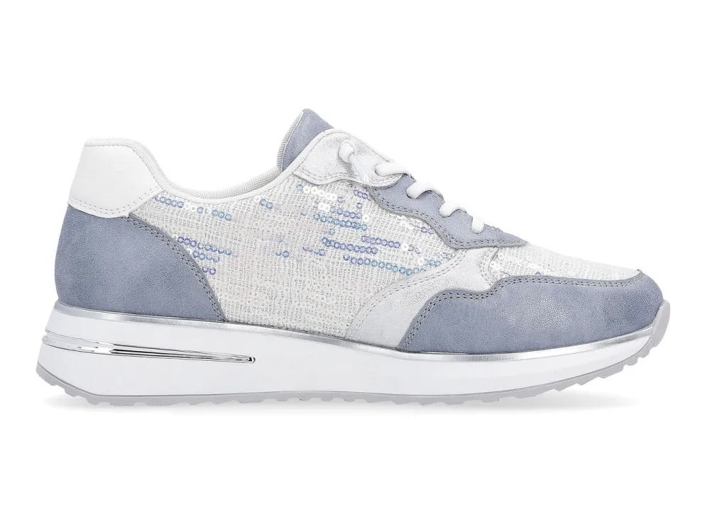 Sneaker mit schimmernden Pailletten in Bleu-Weiss und in Größe 36.