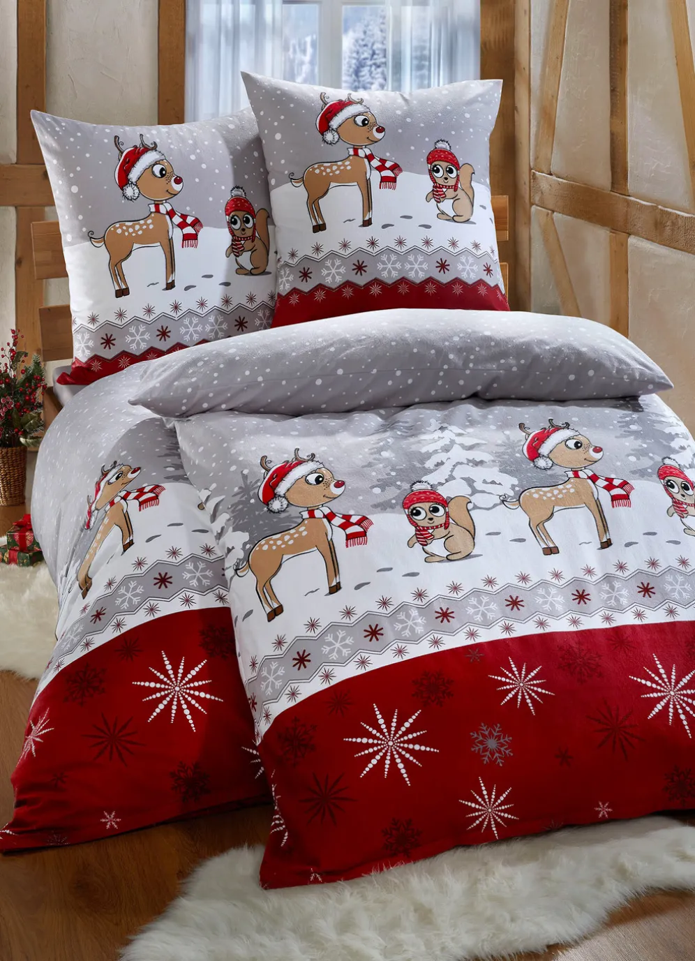 Perfekt für kalte Nächte ist die kuschelig warme Bettwäsche-Garnitur aus dem Hause Florella, die eine winterliche Szenerie mit putzigen Waldtieren zeigt. Mit praktischem Reißverschluss. Die weiche Qualität: Soft-Biber aus 100% Baumwolle. Waschbar bis 60 °C