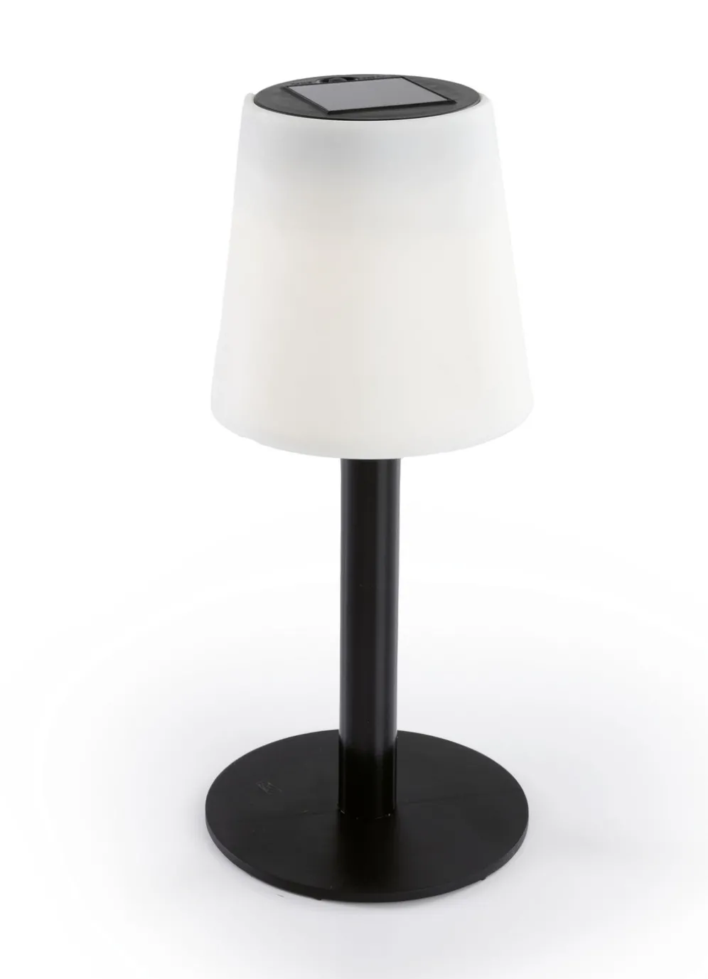 Das Solarpanel speist am Tage den Akku mit Sonnenenergie, um dann bei Eintritt der Dämmerung die modern gestaltete Leuchte erstrahlen zu lassen. Kabellos, wetterbeständig und somit fast überall einsetzbar – innen und außen! Aus Kunststoff. Maße: Ø-Lampenschirm: 12cm, Gesamthöhe: 28cm.