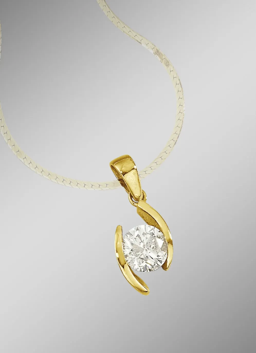 Suchen Sie ein klares Design, klassisch und schön? Dann liegen Sie mit diesem Solitäranhänger genau richtig, denn er ist aus hochwertigem Gold 585/- fein gearbeitet.