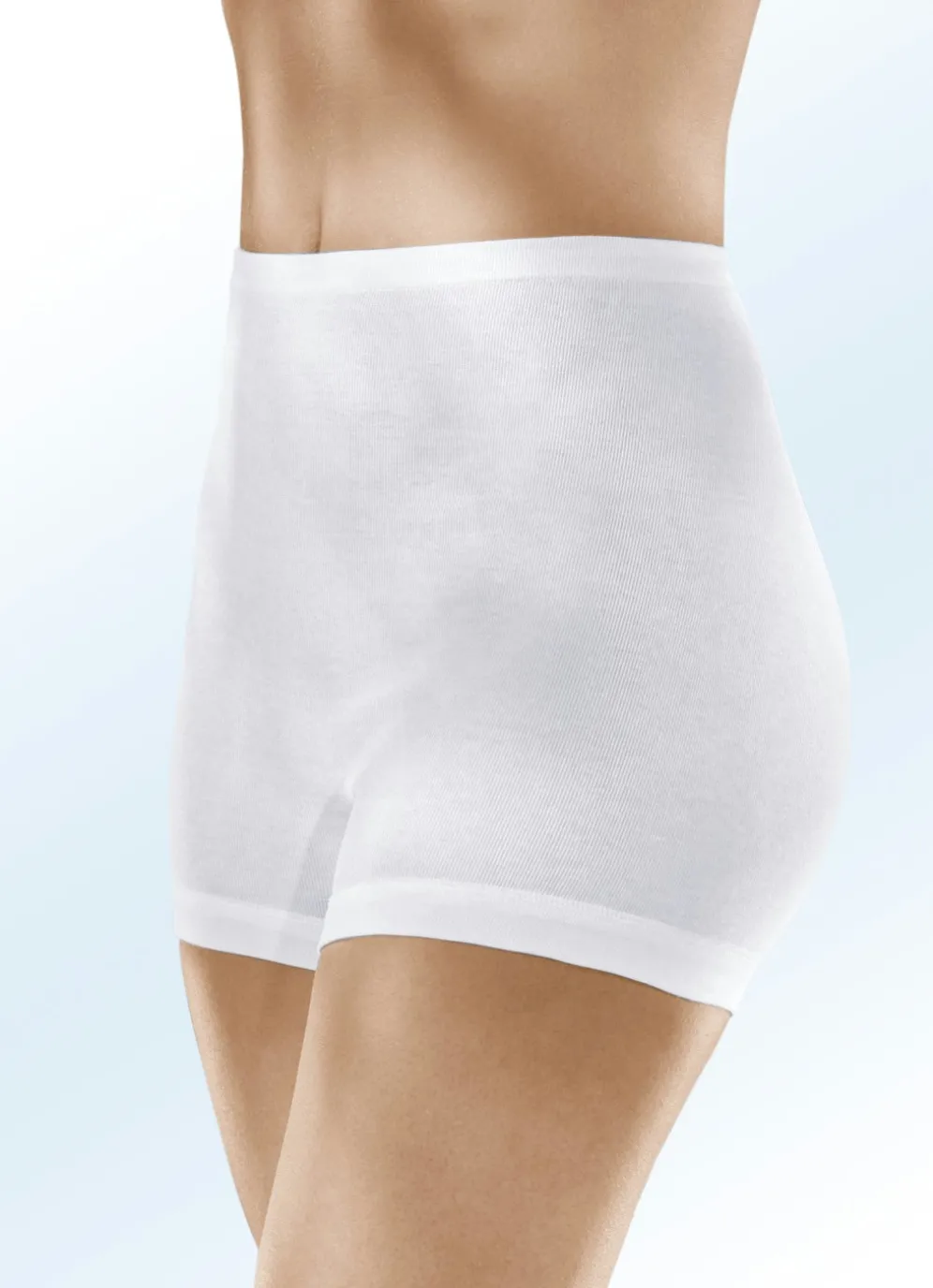 Bequemer, weißer „Speidel“-Schlüpfer mit Gummizug im Bund sowie dauerelastischen Beinabschlüssen. Ohne Seitennähte.
