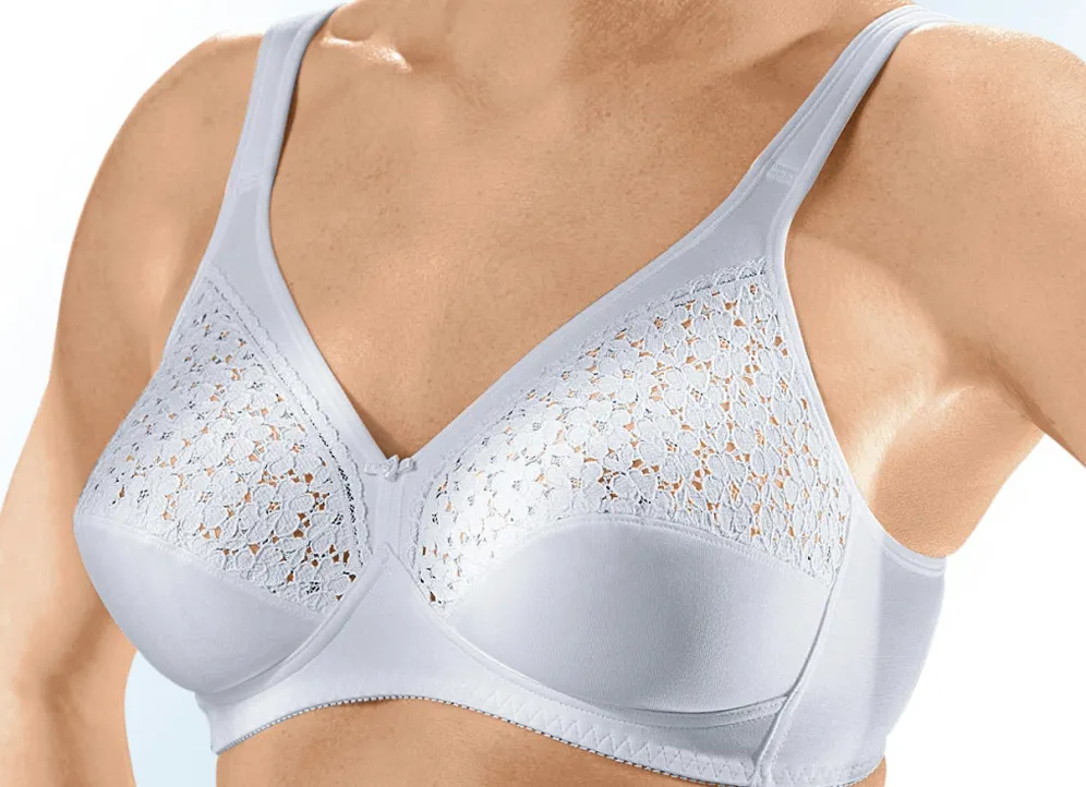 BH von „Speidel“, mit hübschen Spitzeneinsätzen in den Obercups, elastischer Blende am Dekolleté sowie im Schulterbereich weich gepolsterten, verstellbaren Stretchträgern.