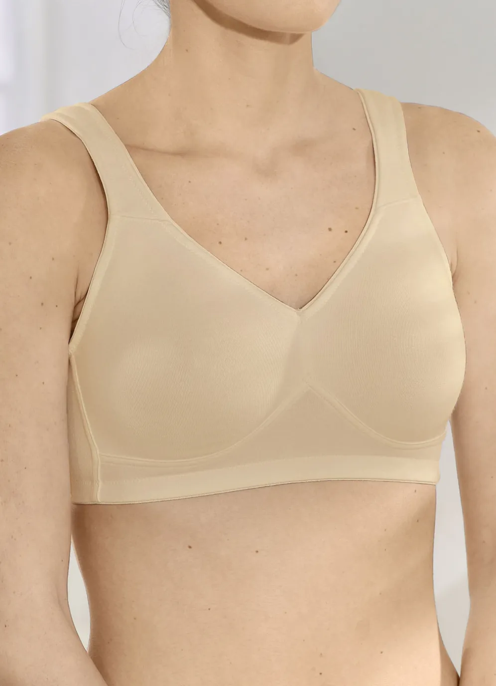 Hautsympathischer „Speidel”-BH mit doppelt vorgeformten Cups sowie im Schulterbereich weich gepolsterten, verstellbaren Stretchträgern.