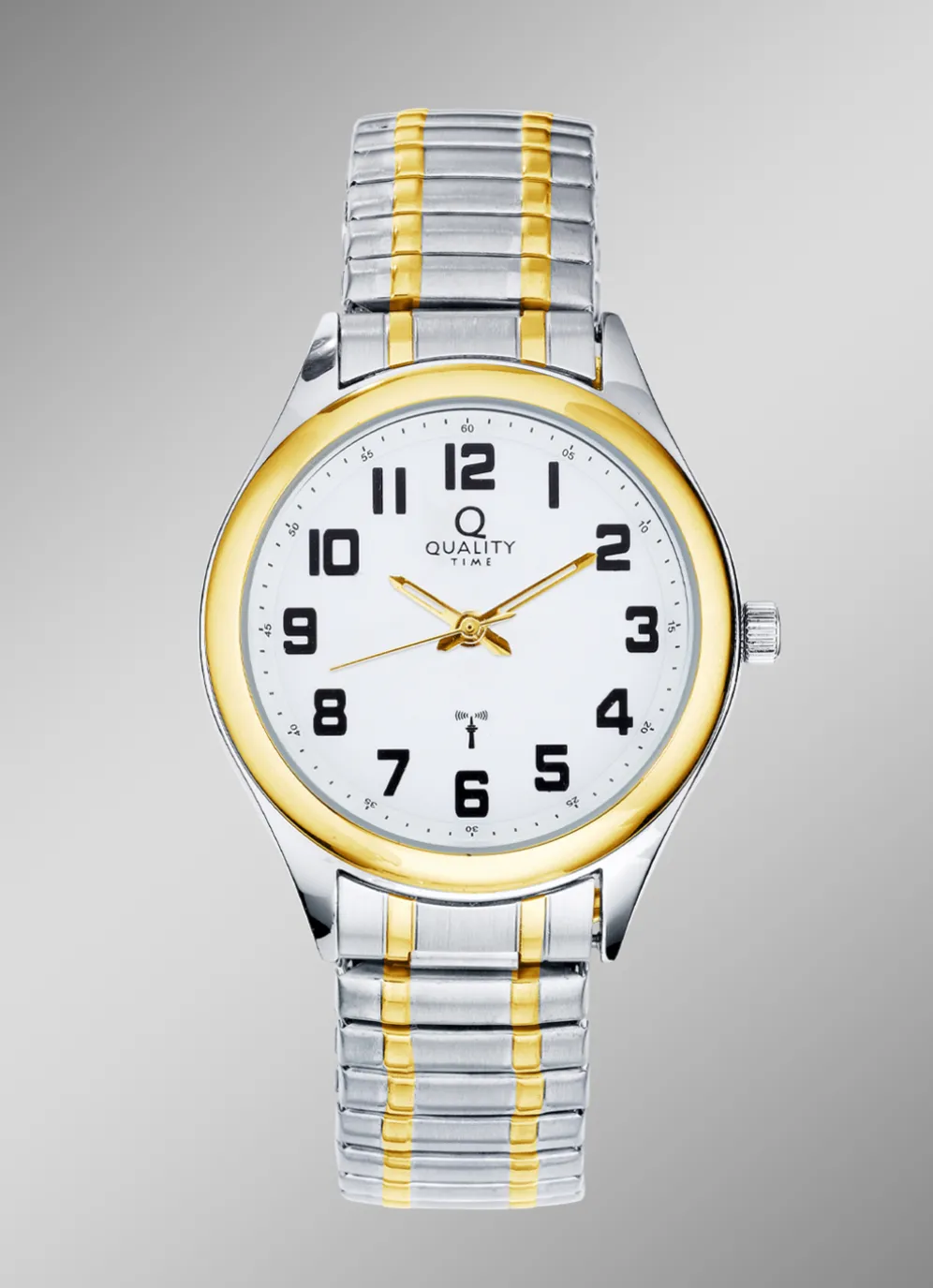 Diese elegante und sportliche Funk-Damenuhr der Marke Quality Time passt zu jedem Outfit. Diese Uhr verbindet Stil und Funktionalität in einem hochwertigen Metallgehäuse in Bicolor. Das Metallzugband in Bicolor sorgt für einen angenehmen Tragekomfort und passt sich individuell an. Das Mineralglas schützt das Zifferblatt vor Kratzern und Stößen. Die Uhr zeigt Ihnen immer die genaue Zeit an, dank der präzisen Funktechnologie. Außerdem ist die Uhr spritzwassergeschützt, sodass Sie sie auch bei Regen oder Schnee tragen können.
