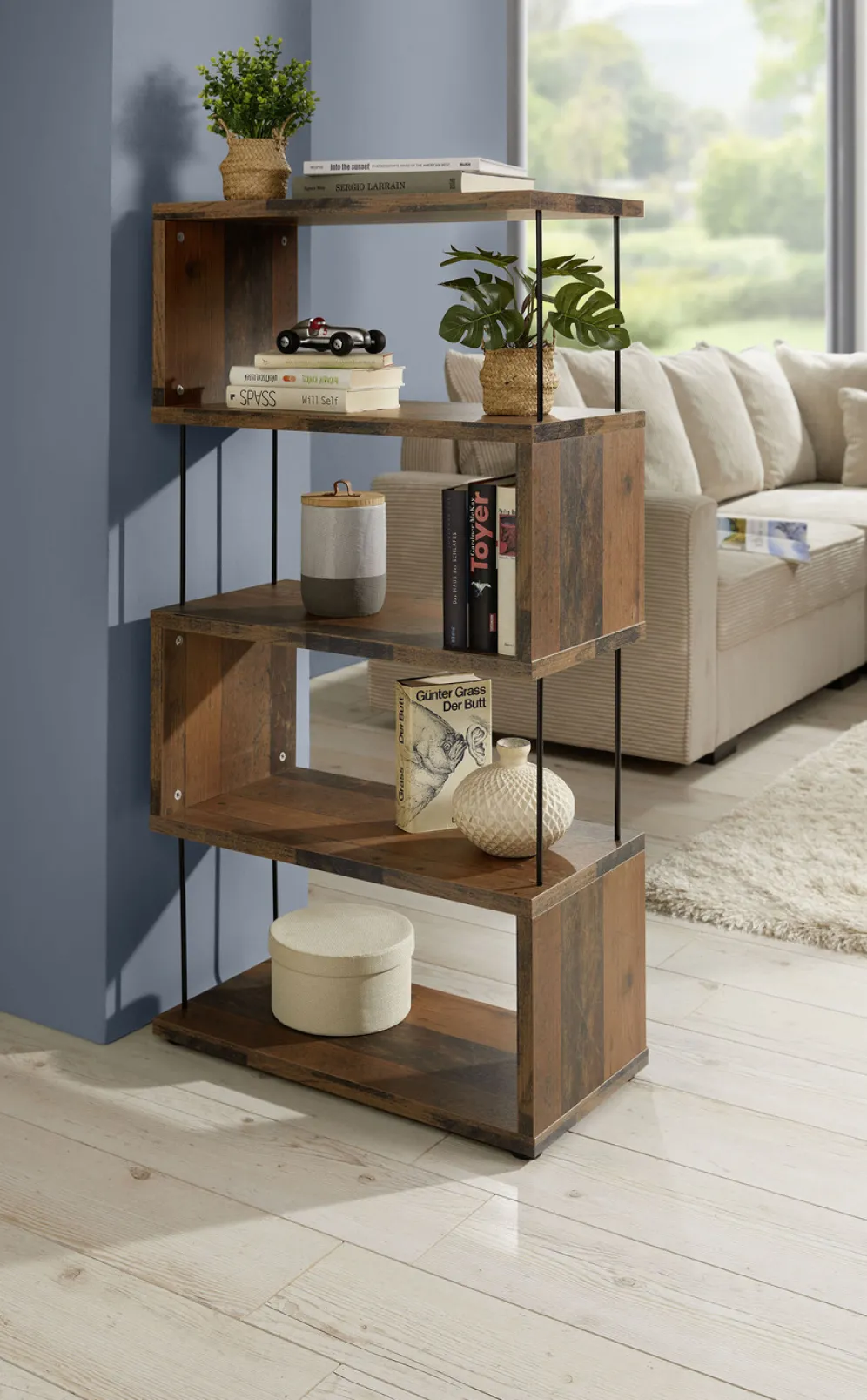 Ein außergewöhnlicher Blickfang in Ihrem Wohnraum wird dieses Standregal mit seinen offenen Ablagefächern! Auch ideal als Raumteiler geeignet. Fachhöhe je 28 cm. Belastbarkeit je Boden 6 kg. Mit schwarzen Metallstäben. Mit Aufbau-Anleitung zur einfachen Selbstmontage.