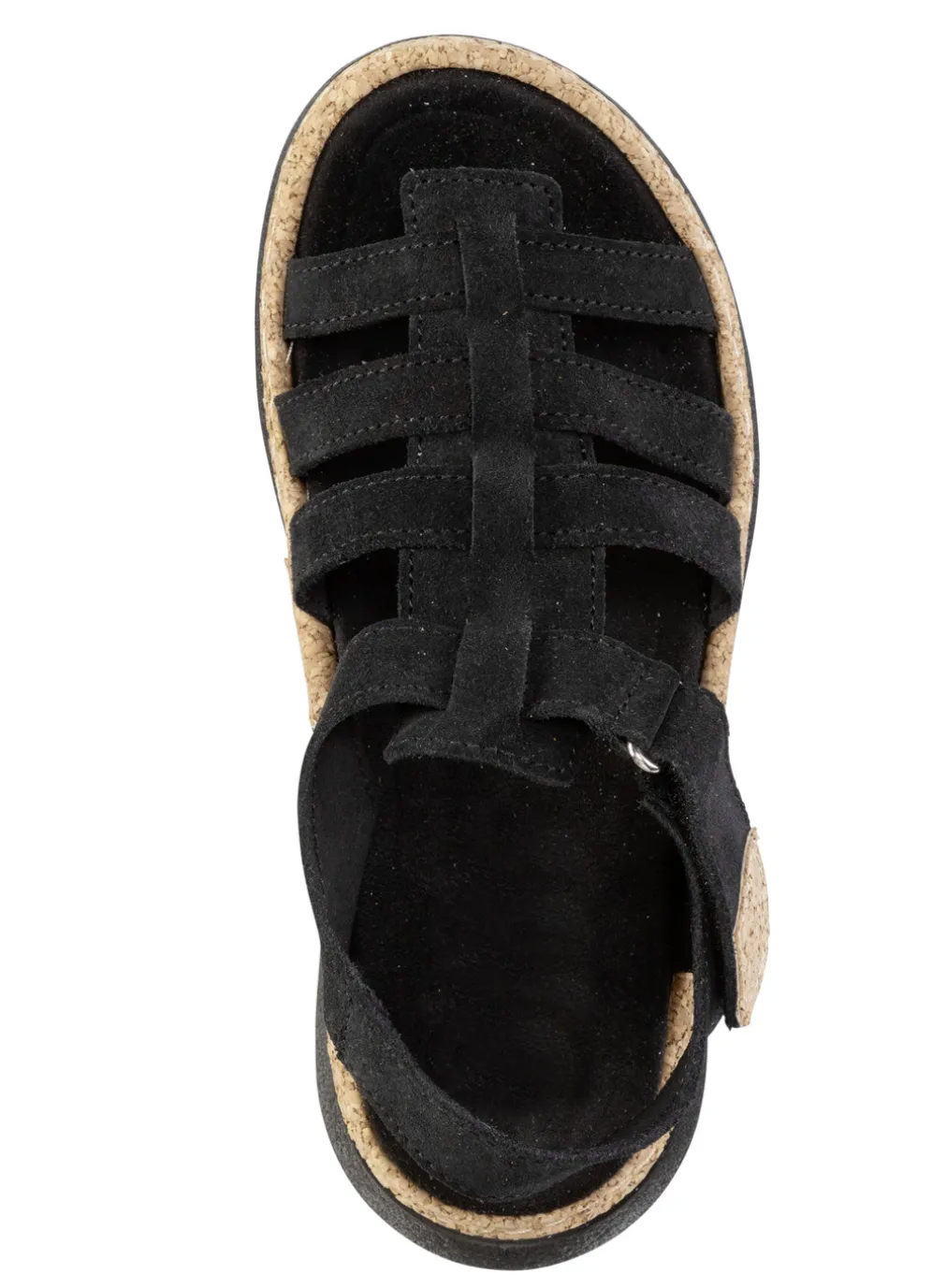 Stegspangen-Sandale mit Kork-Besätzen in Bleu und in Größe 42.