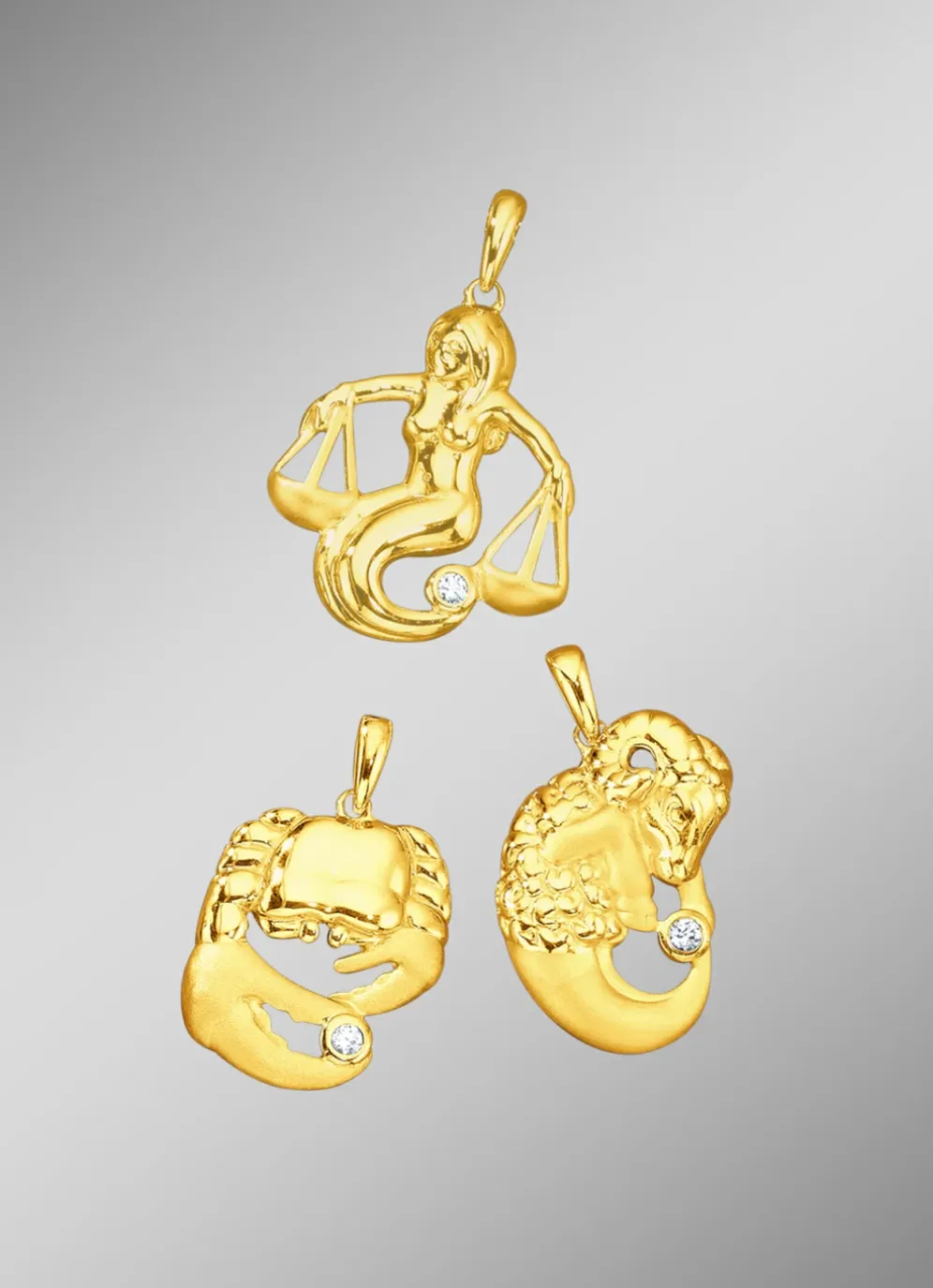 Sternzeichen-Anhänger matt/hochglänzend in der Legierung Gold 333/- fein, mit Sternzeichen Waage sowie in Größe 9.