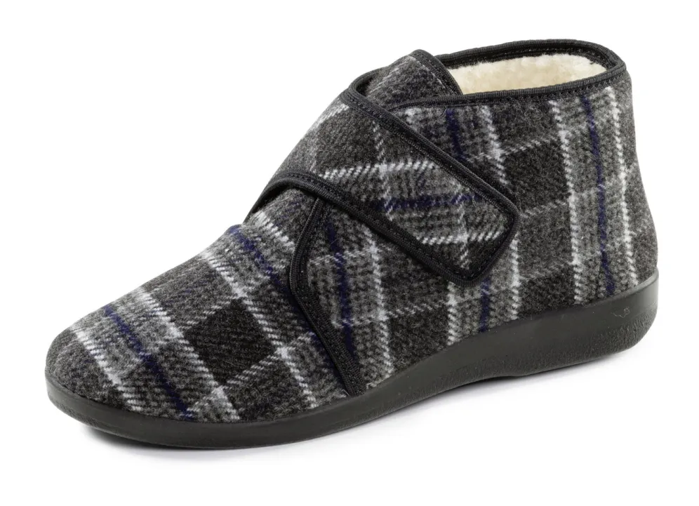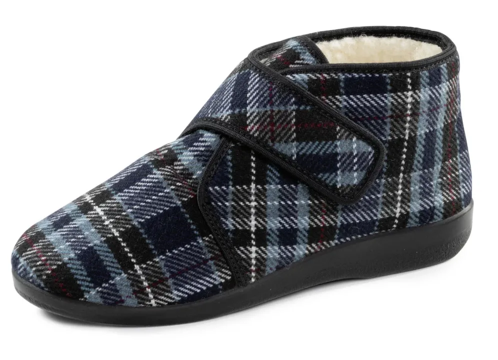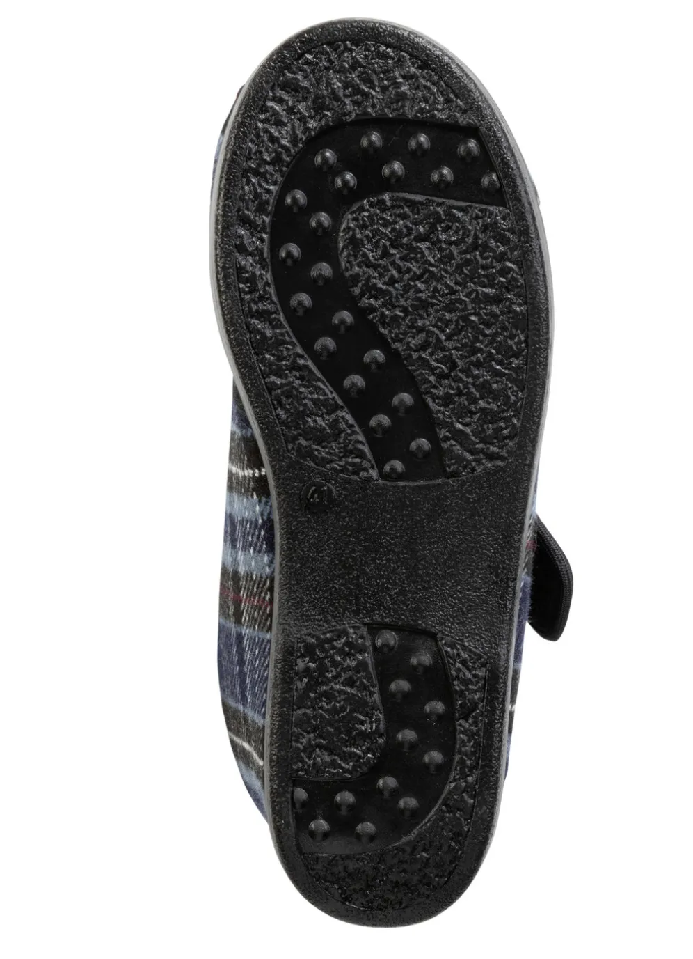 Stiefelette aus kariertem Textilmaterial, mit Klettverschluss: Weite H, Warmfutter und Fußbettbezug aus reiner Wolle sowie superleichte PU-Laufsohle