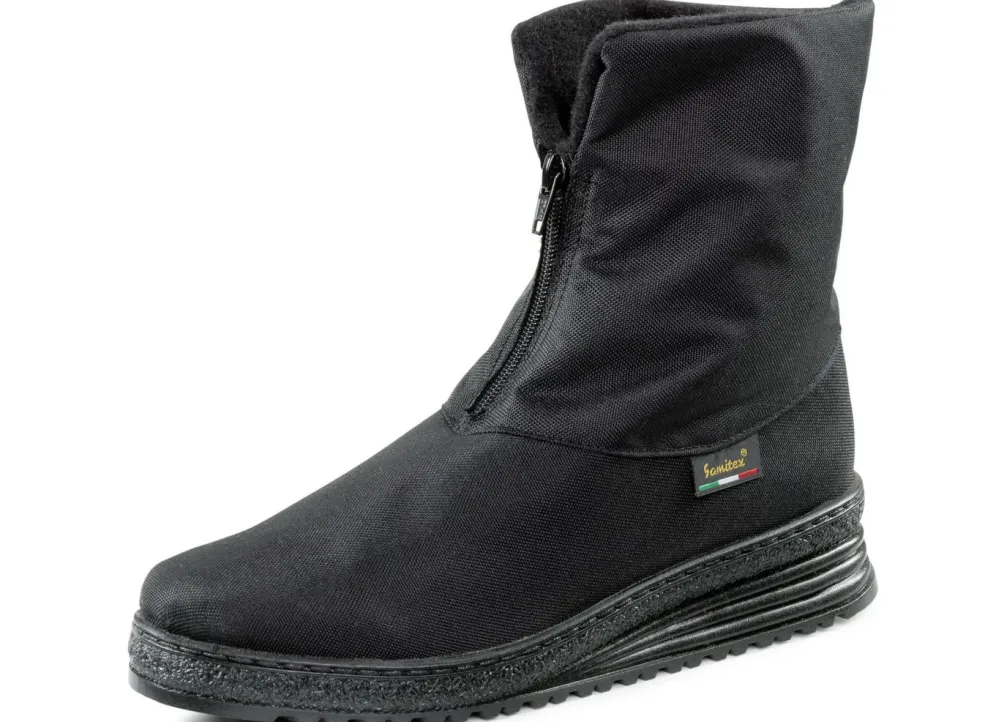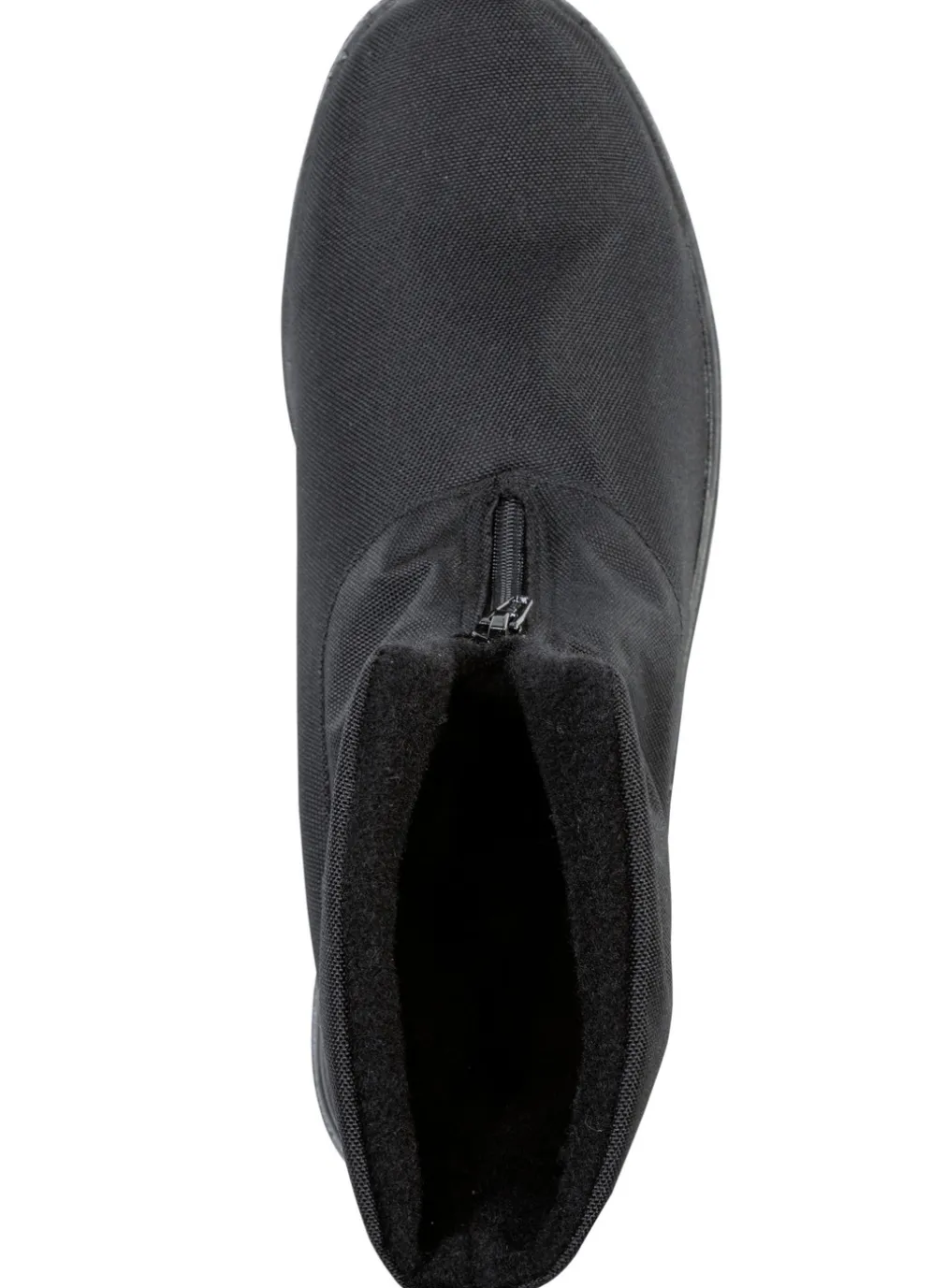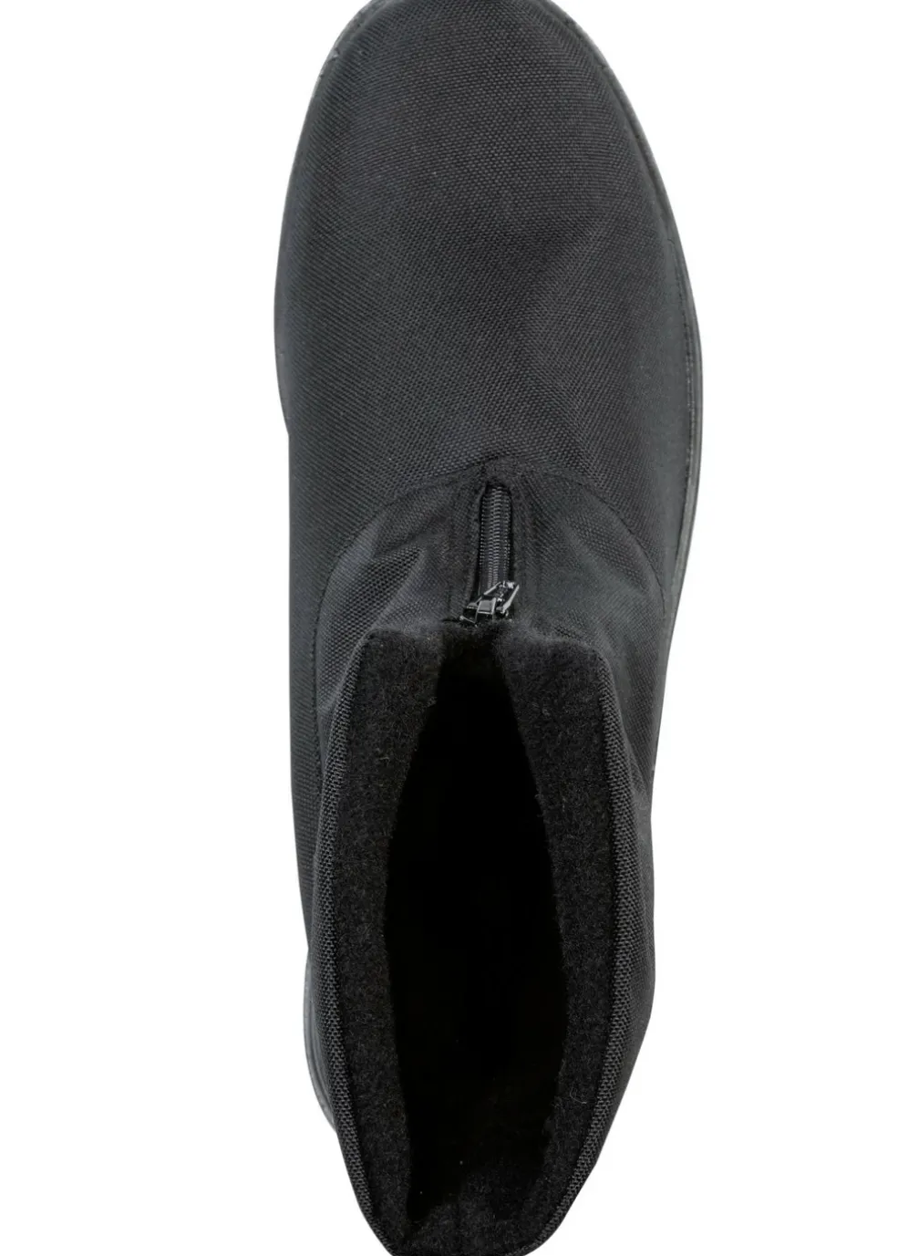 Wetterfeste Stiefelette aus weichem Textilmaterial in Schwarz: mit Klimamembrane ausgestattet, praktischer Frontreißverschluss, Warmfutter aus 100% Polyester, Elastomere-Profilsohle. Schafthöhe ca. 18 cm