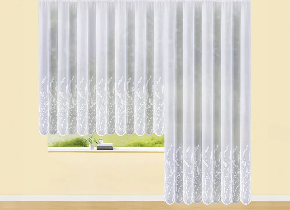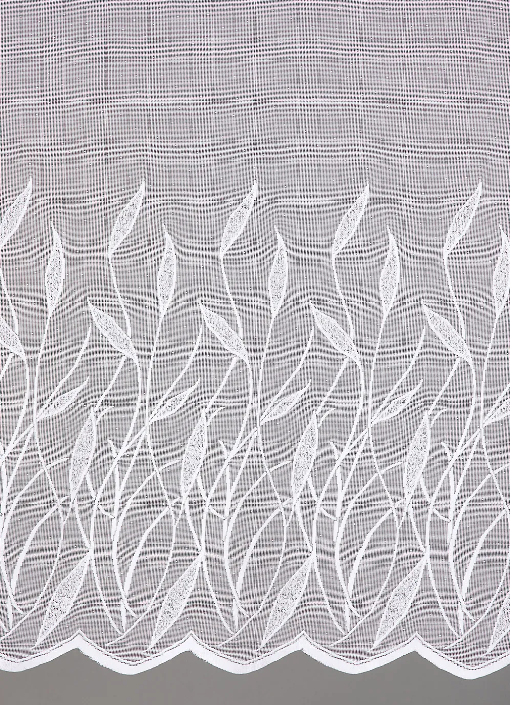 Für Eleganz an Ihren Fenstern sorgt diese leicht transparente Store mit herrlichen Gräserdessin und gebogtem Abschluss. Mit Universalschienenband. Qualität: Jacquard aus 100% Polyester.