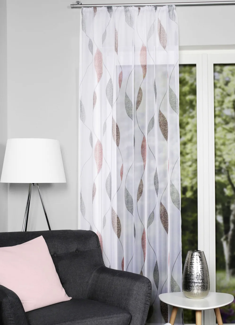 Mit ihrem interessanten Dessin sind diese tollen Stores wahre Blickfänge an Ihrem Fenster. Die Qualität: bedruckter Voile aus 100% Polyester.