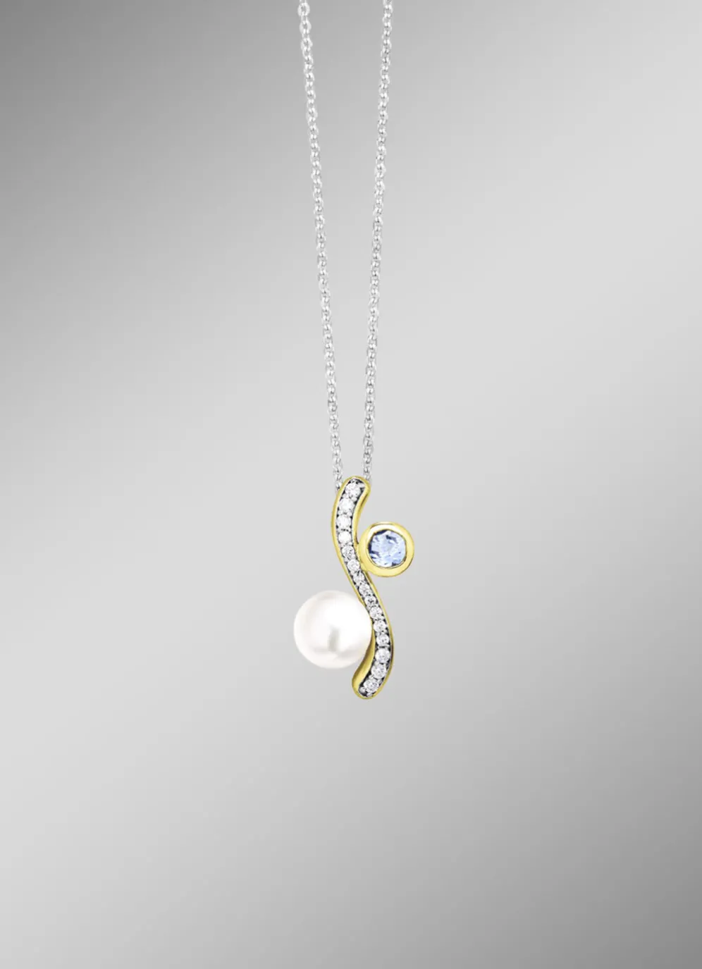 Ein Highlight für Schmuckliebhaberinnen: Dieser elegante Anhänger aus feinstem Silber 925/- begeistert durch seine detailreiche Gestaltung. Die zentrale Süßwasser-Zuchtperle (7,5–8 mm) wird von funkelnden synthetischen Zirkonia und einem zarten, behandelten Baby-Blautopas kunstvoll ergänzt. Der 22 mm lange, vergoldete Anhänger wird durch die rhodinierte Ankerkette (45 cm) perfekt in Szene gesetzt. Mit Federring und verdeckter Öse vereint dieses Schmuckstück modernes Design, höchsten Tragekomfort und zeitlose Eleganz – ein faszinierender Begleiter für jeden Anlass.