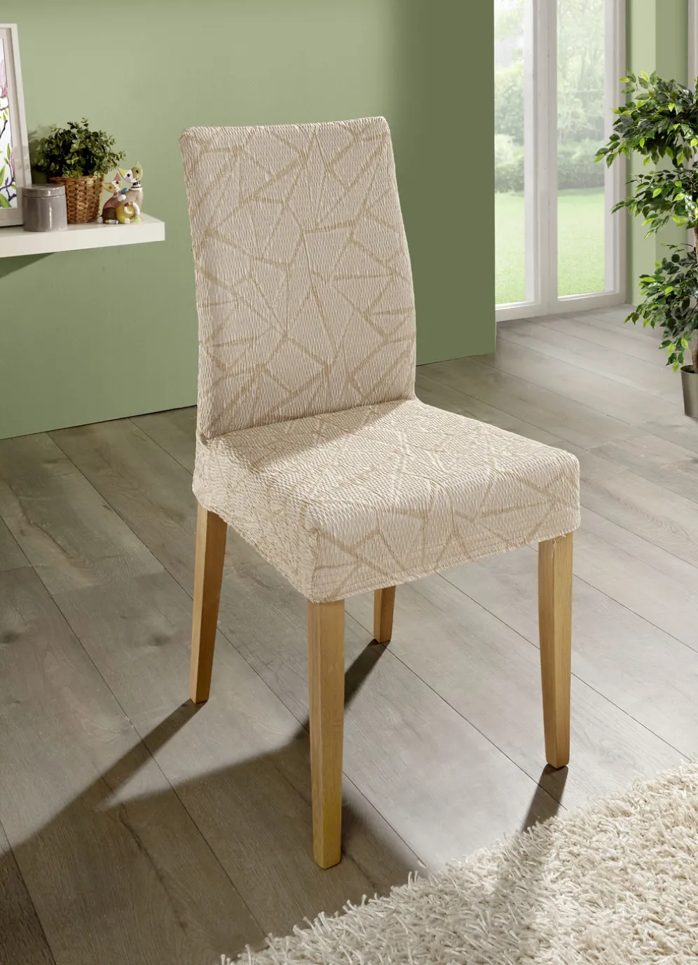 Stretchbezüge mit optimaler Passform in Größe 106 (Stuhlbezug) und in Beige.