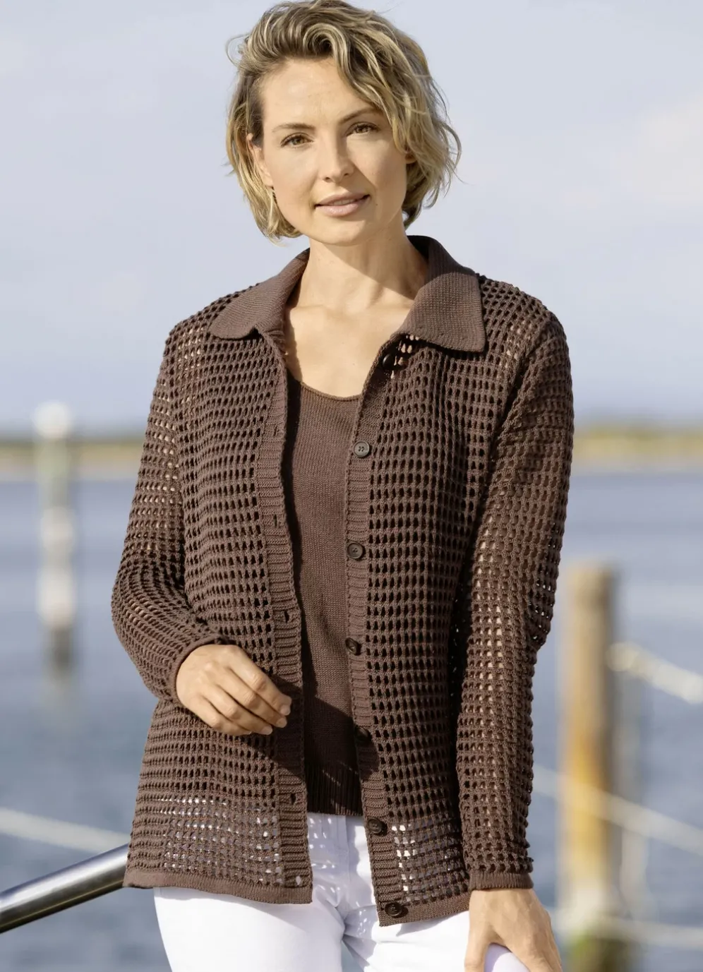 Strick-Twinset in Netzstrick